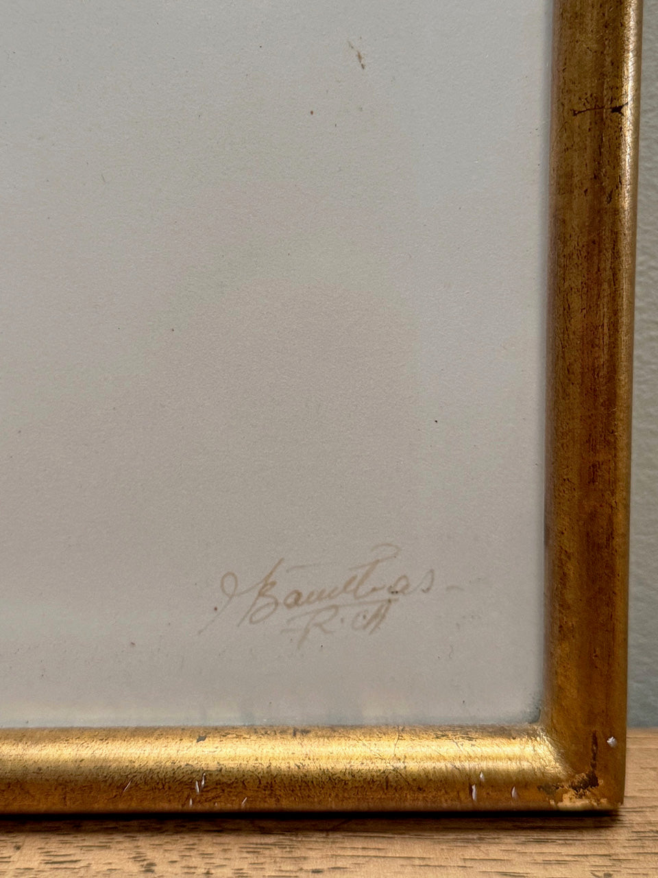 Each piece is signed on the bottom right corner, by the artist, which we believe is 'Bauchas R.A.', although the signature is hard to read.
