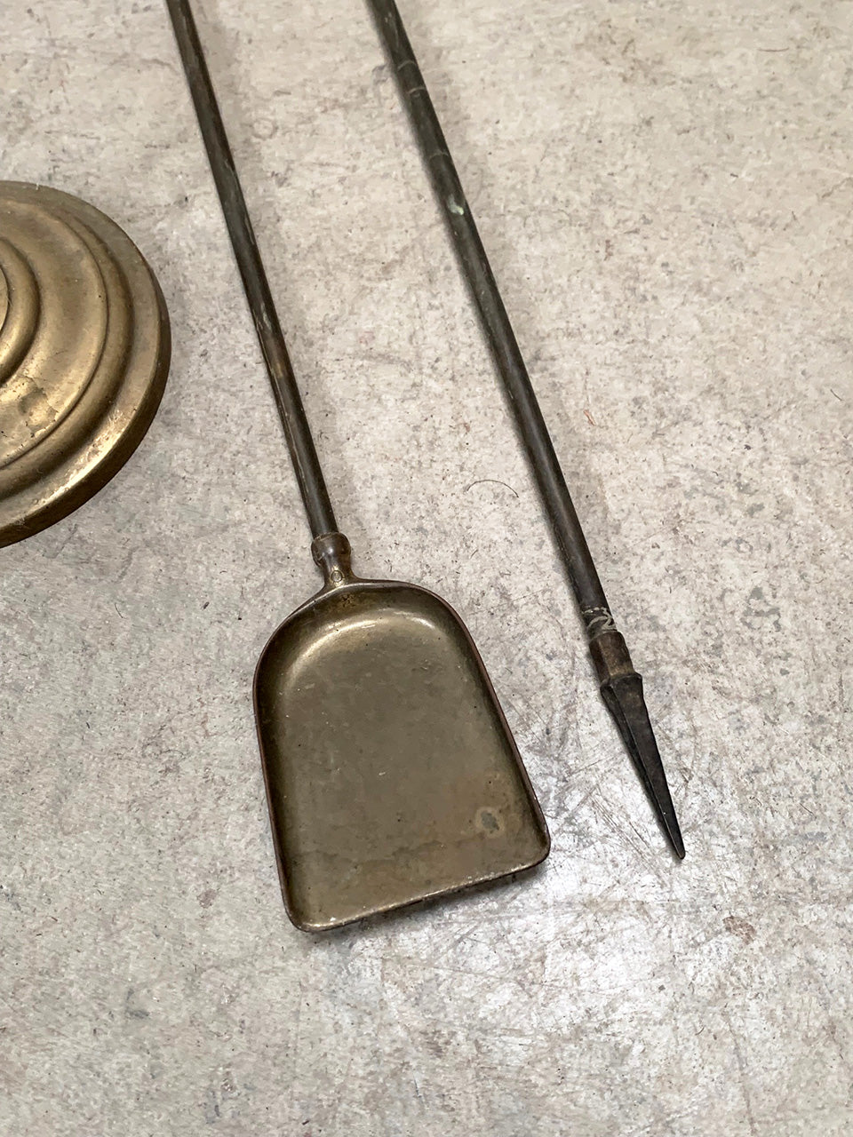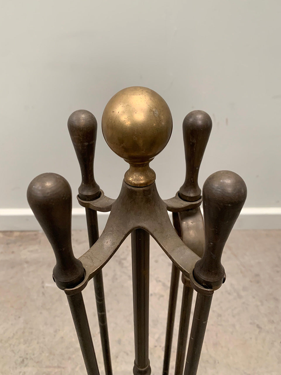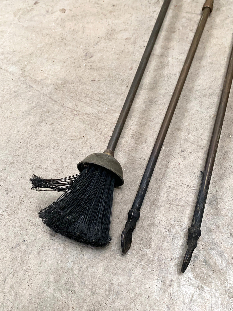 Tall fireside companion set comprising of 4 tools: a shovel, brush, tongs and a poker. In good, used condition.