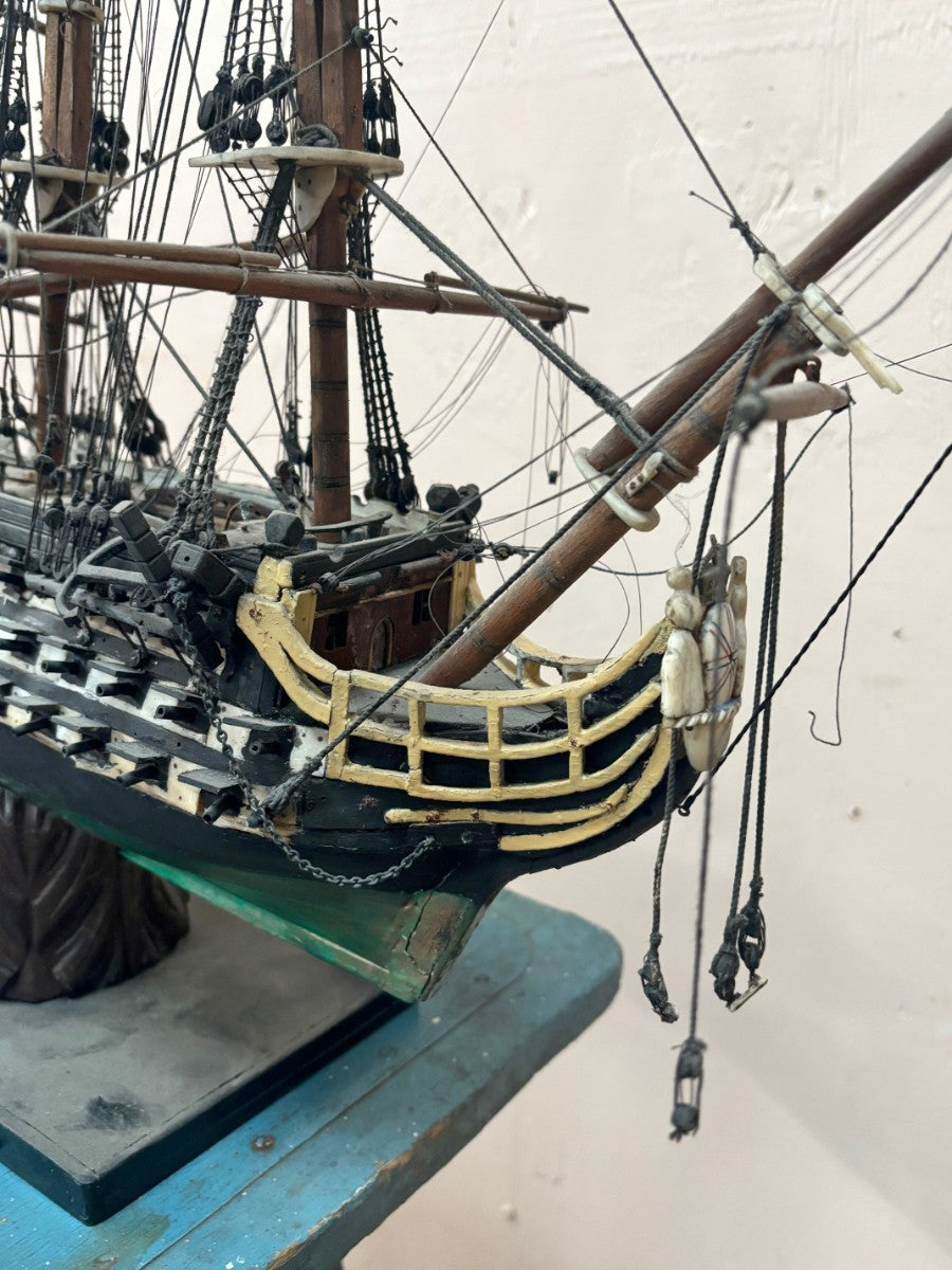 Antique model of HMS Victory married with a carved supporting base, with some minor damage and losses.