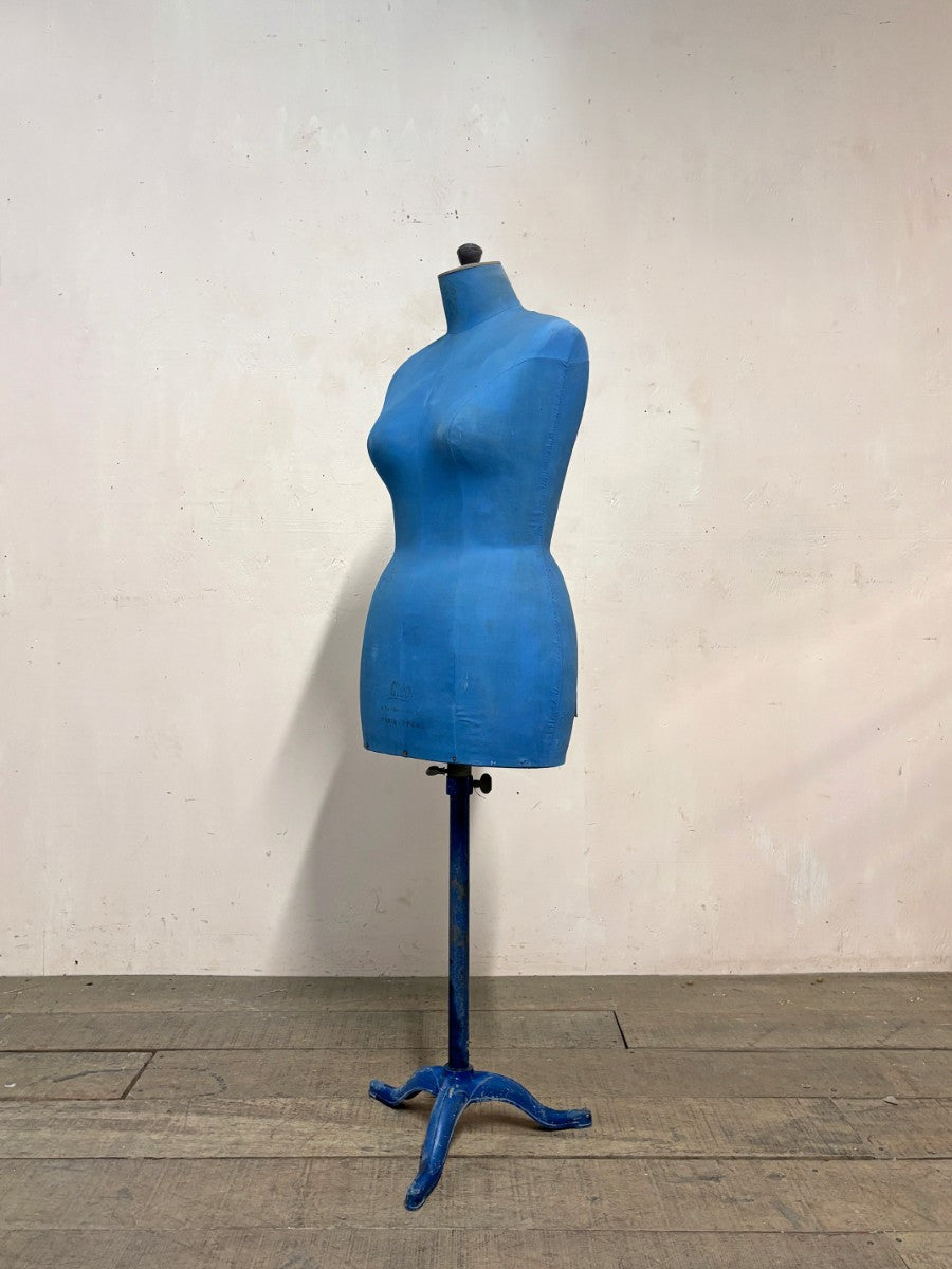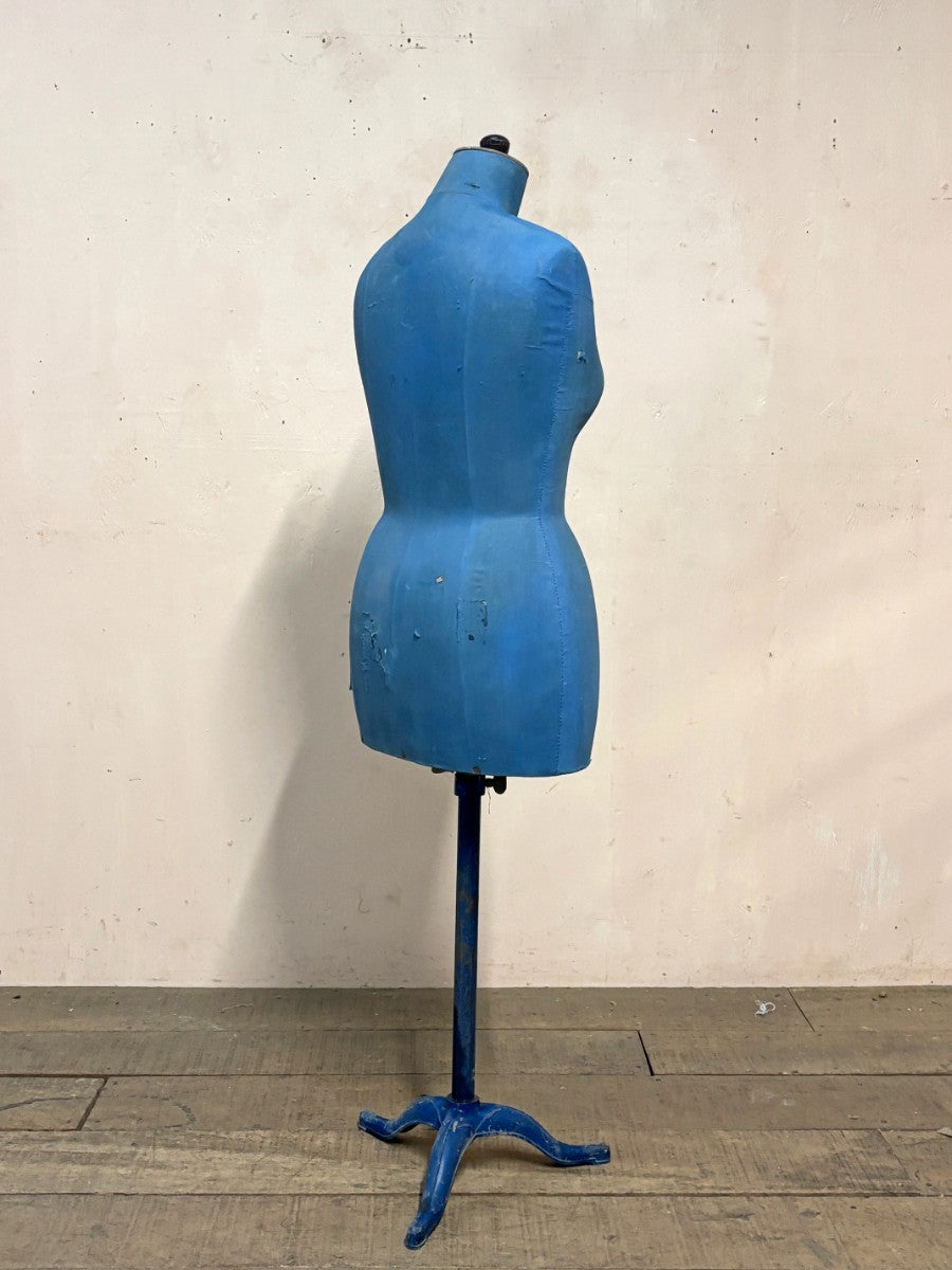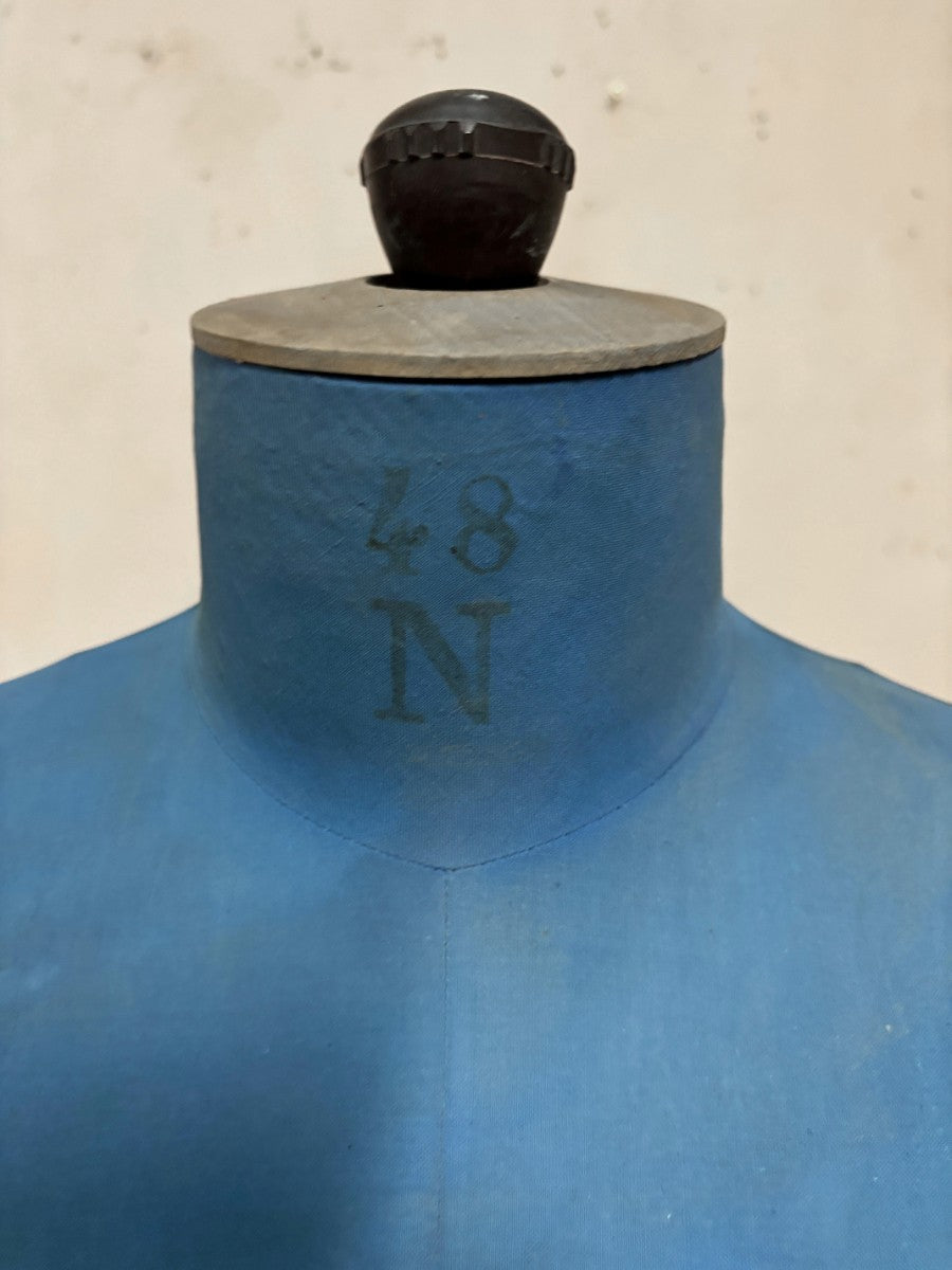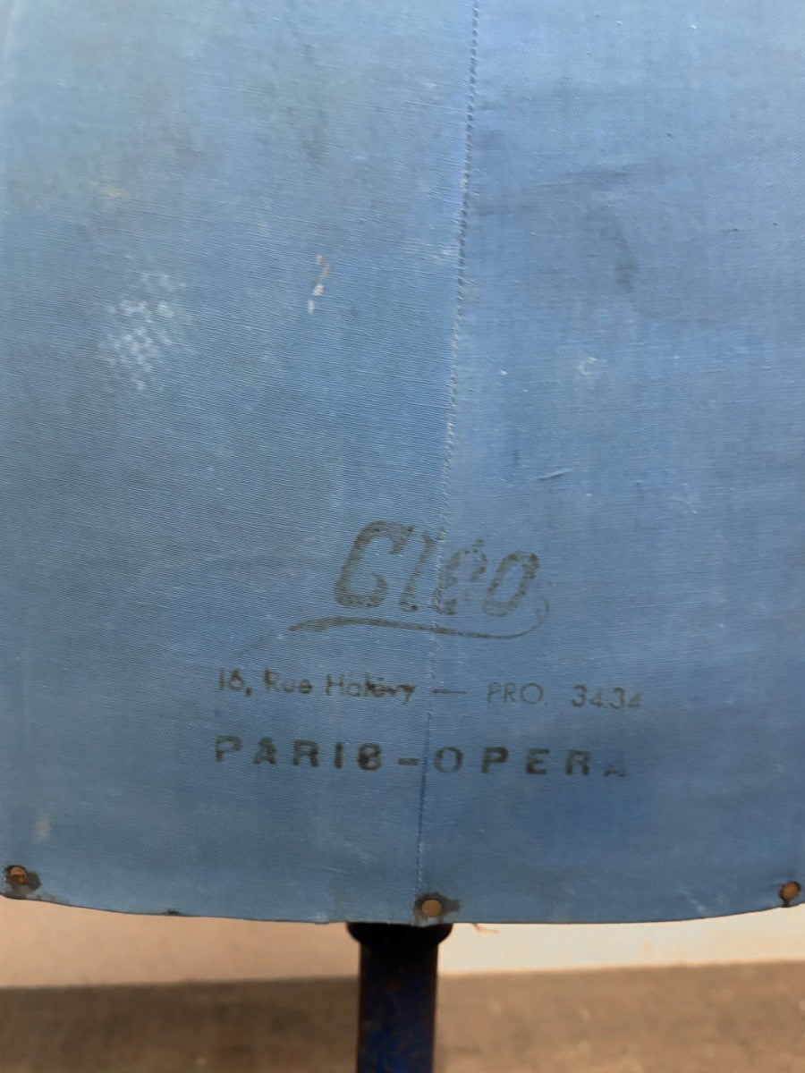 Mid 20th century French mannequin on stand and retaining original blue cotton cover.