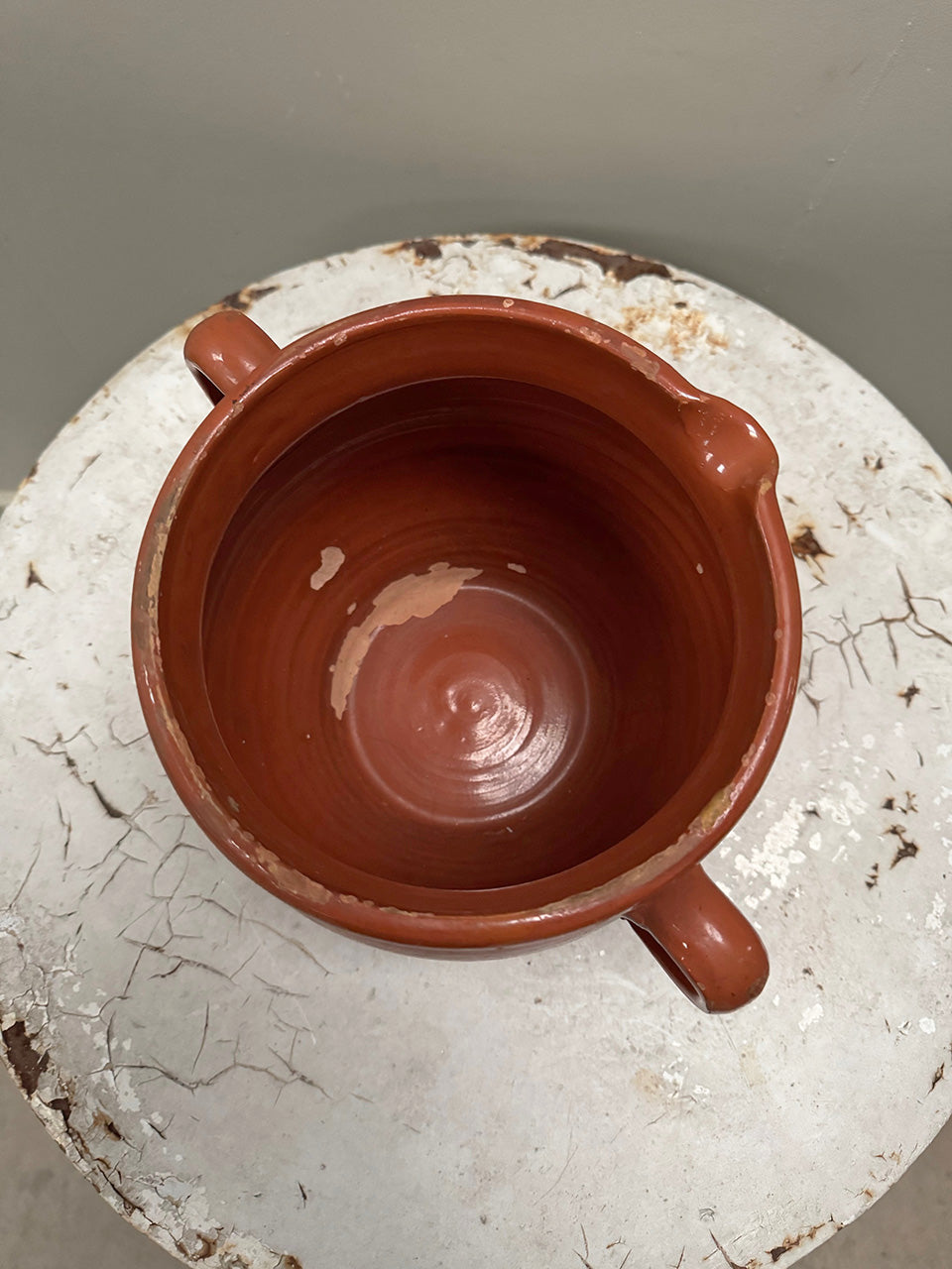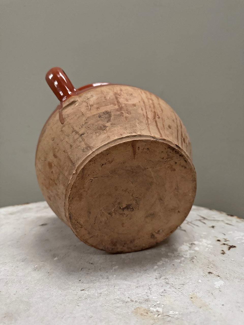 Part glazed in a terracotta tone, some of the internal glaze has come away.