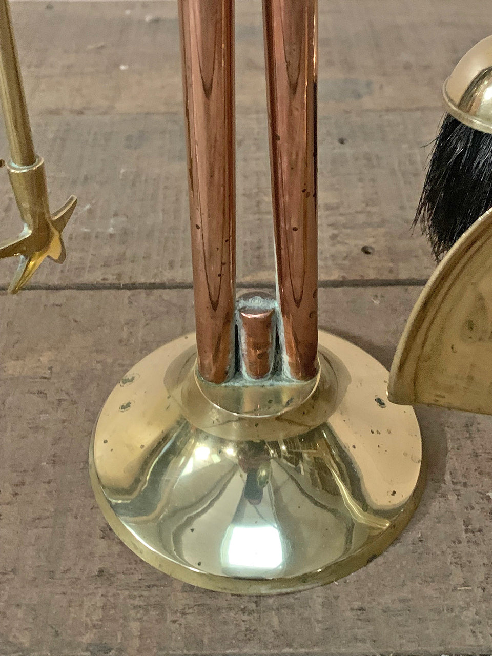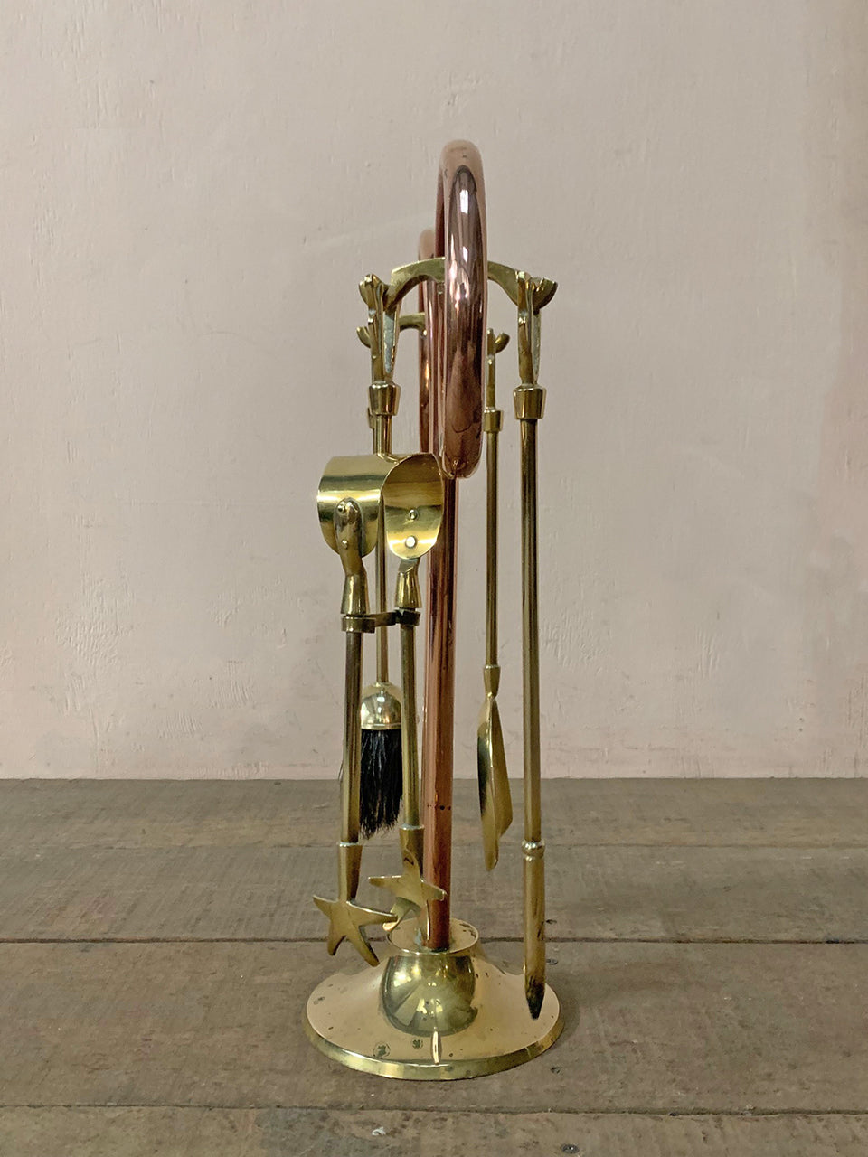 Fireside companion set comprising of 4 tools; a poker, coal tongs, a shovel and a round brush.