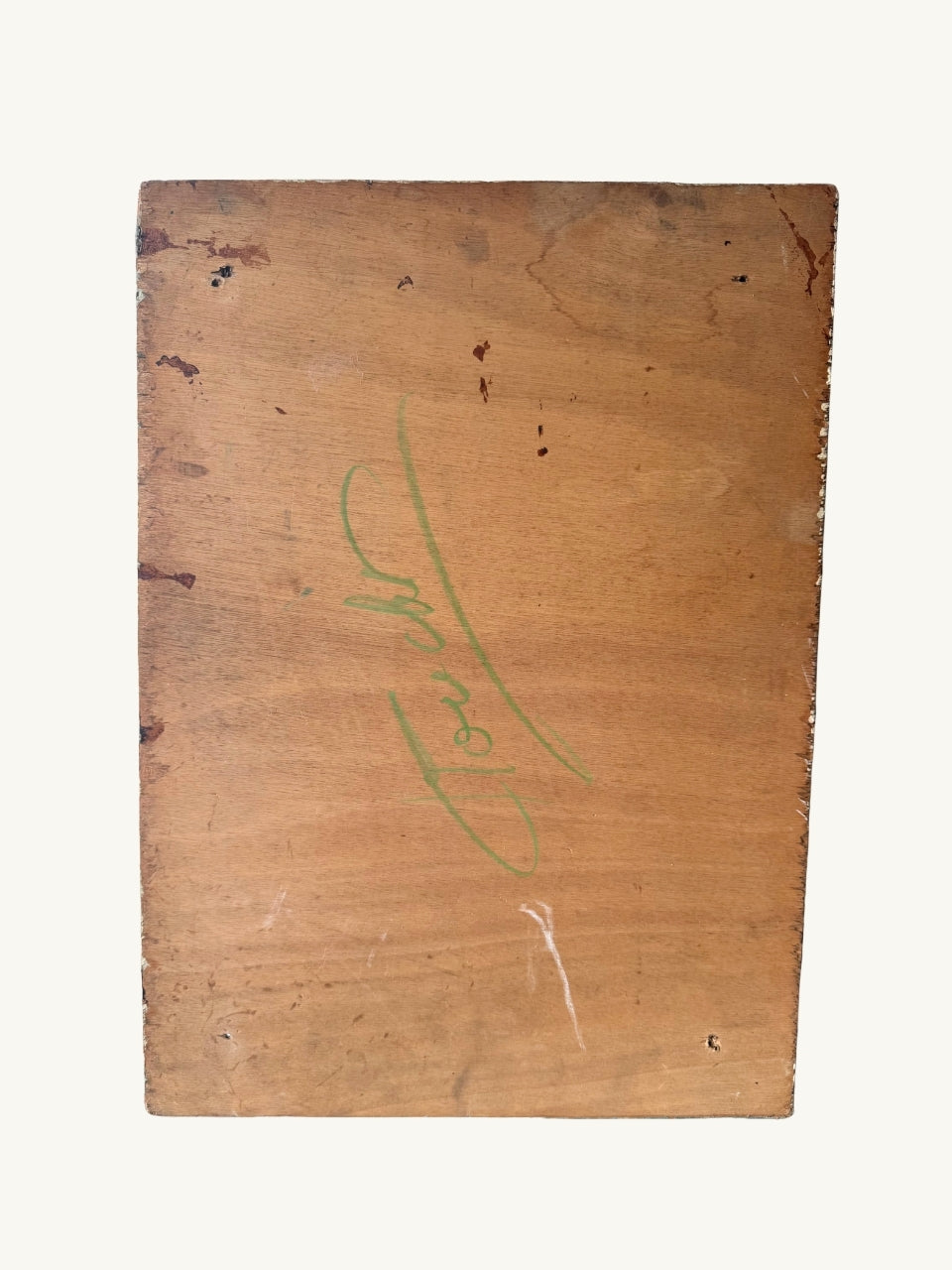 A paper on board street sign, with a striking font that states: "It is strictly forbidden to interfere with newspaper carriers." Dated "26 September 1962" on the bottom right of the sign. The paper is frayed on the sides and has visible water stains throughout. Sourced from the Loire Valley.