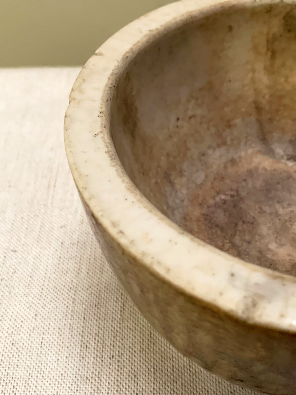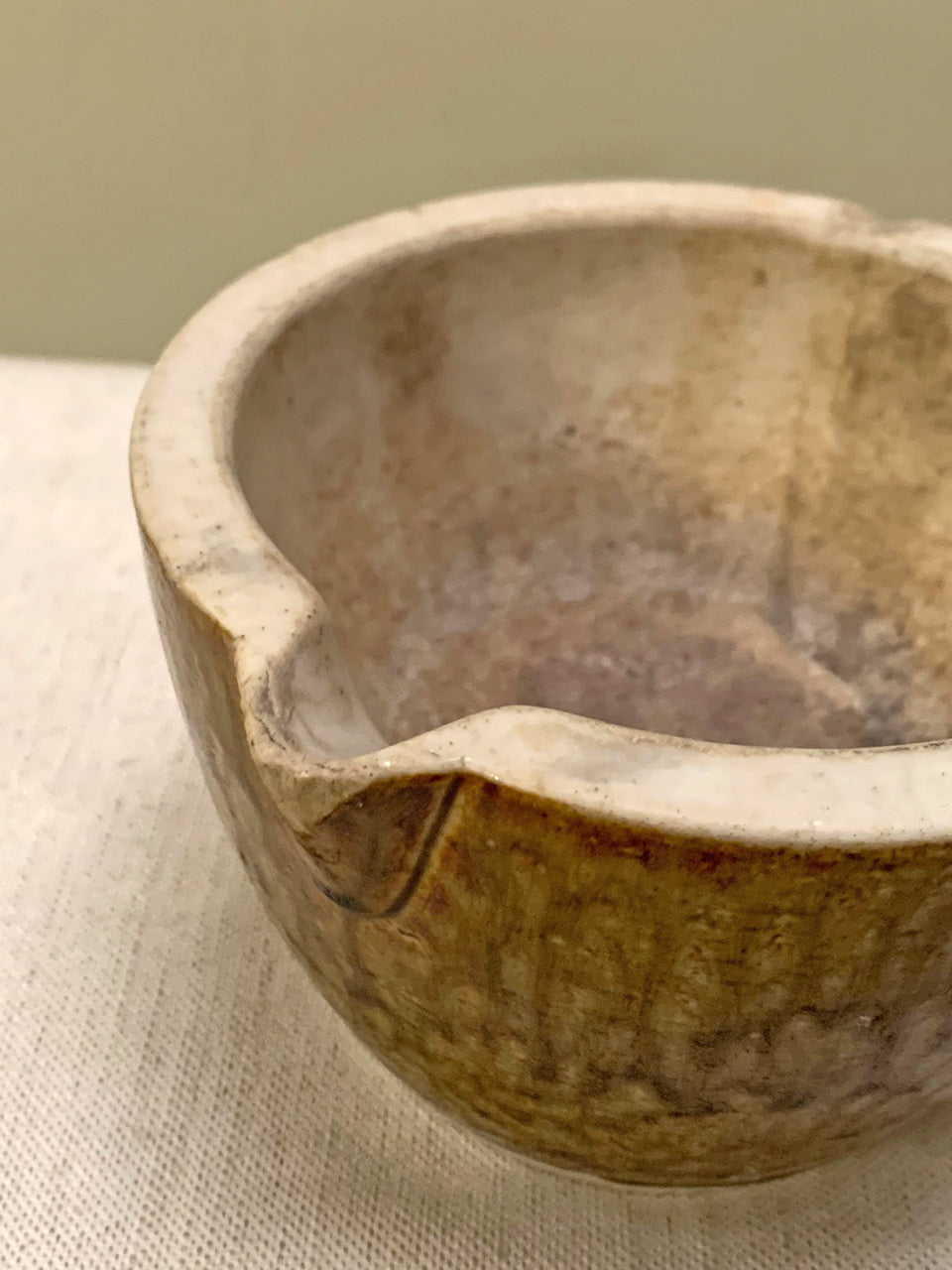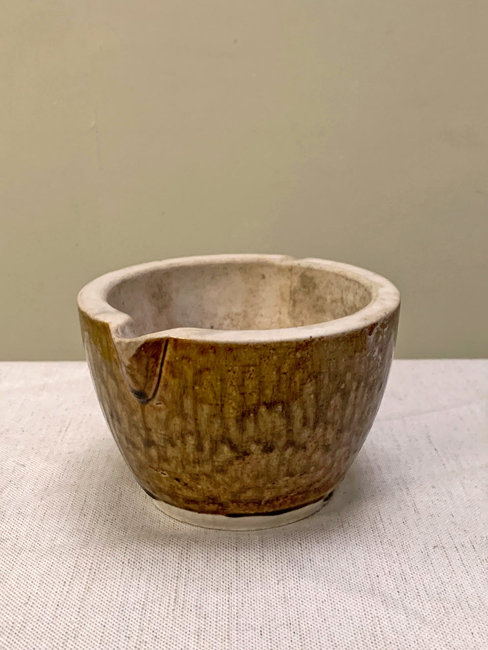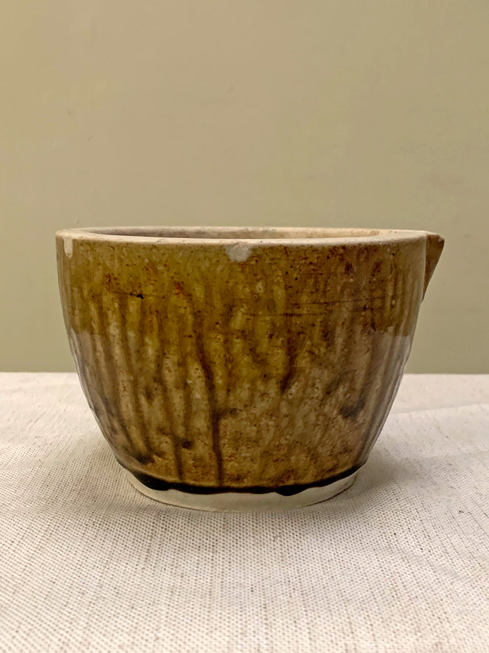 Well used and heavy, it has a spout, and a few knocks but remains useable and very decorative.