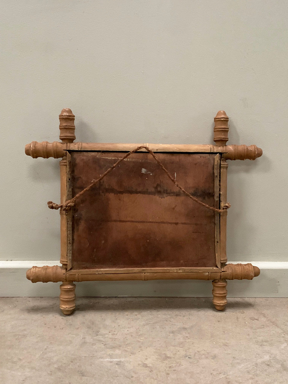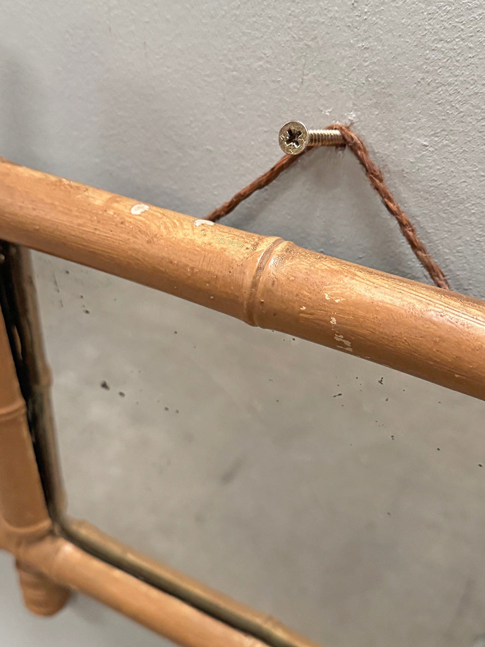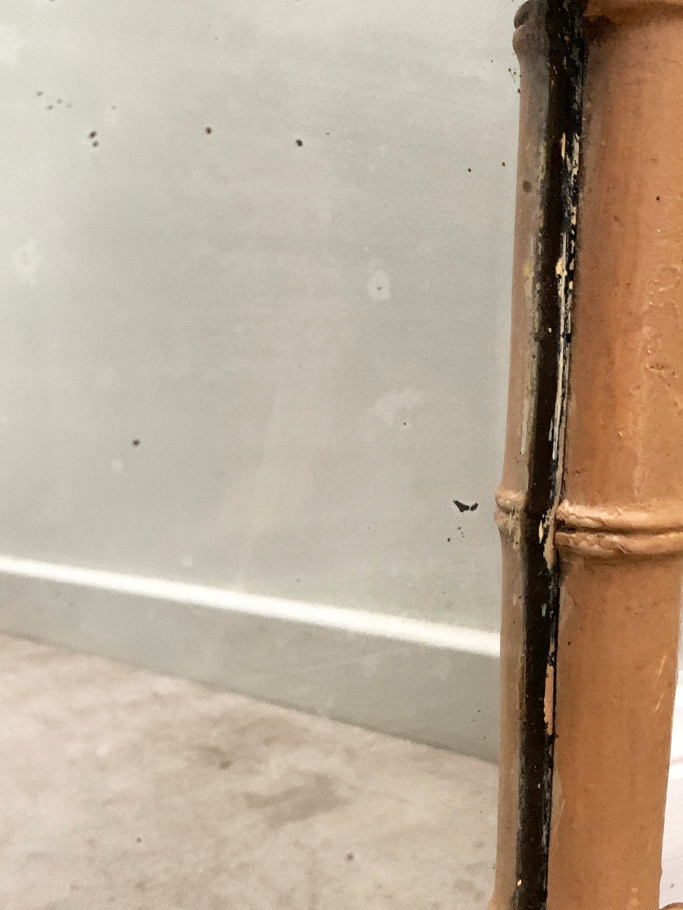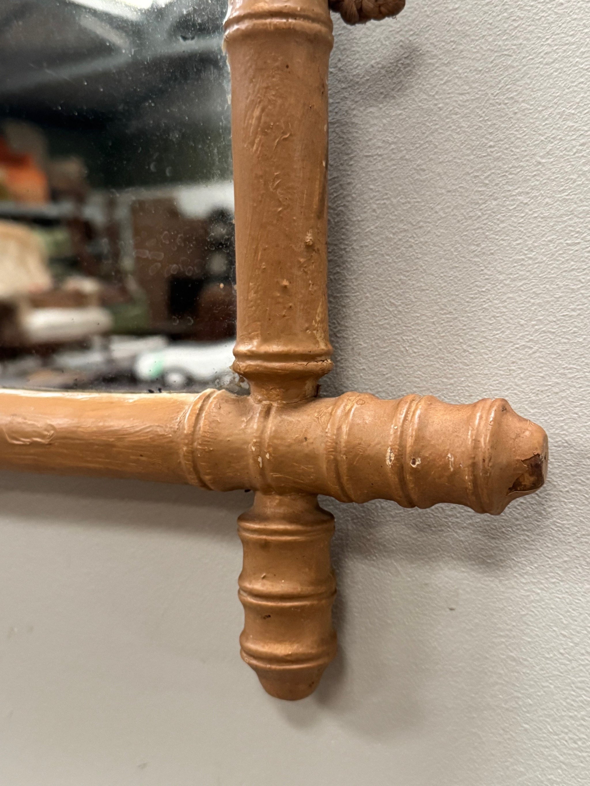 Around 100 years old, is this sweet faux bamboo mirror overpainted in a caramel tone.