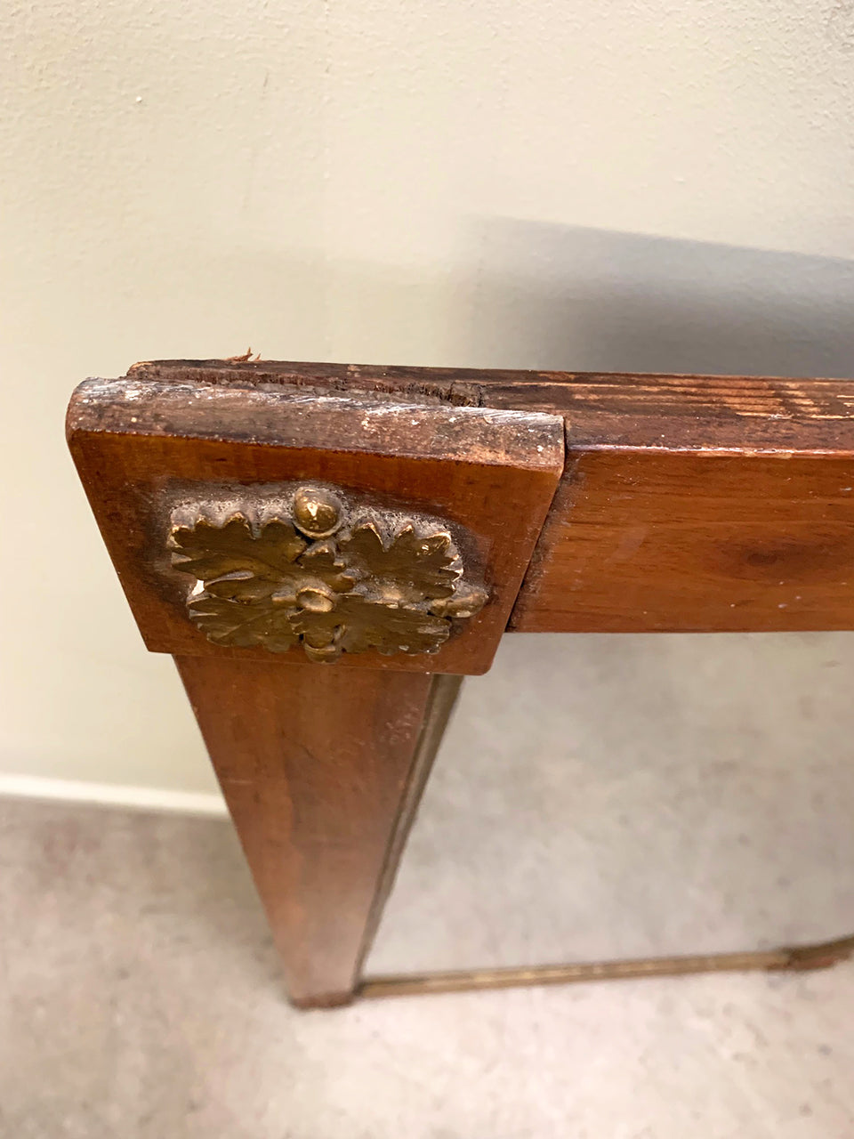 There are gold coloured decorations to the four corners, each showing various degrees of wear.