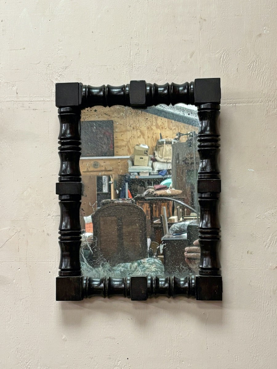 2 tropical hardwood mirrors with foxed, mercury, plates.
