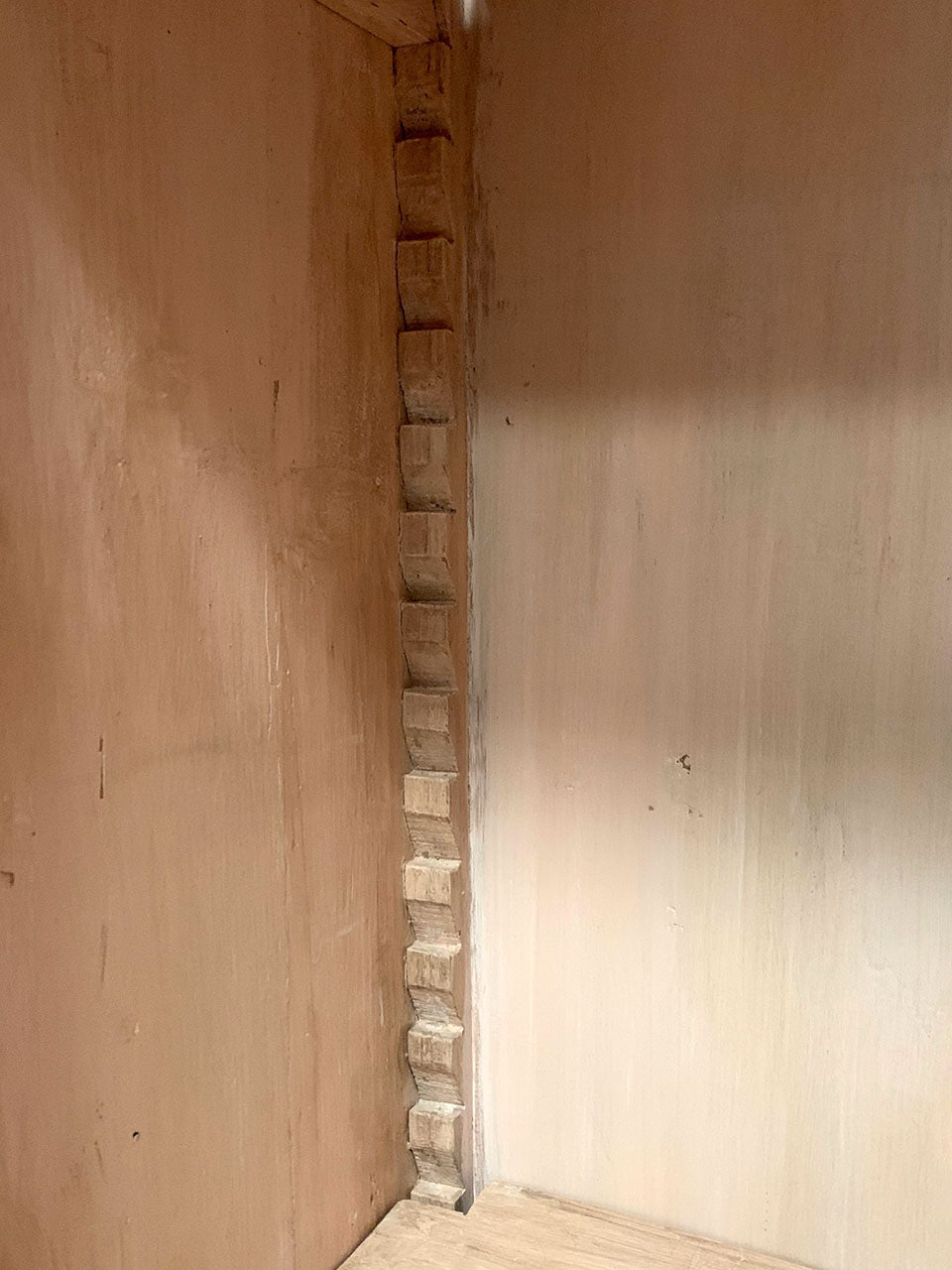 The cupboard has a lovely carved cornice, a working lock with key, and sits on bun shaped feet (at the front).