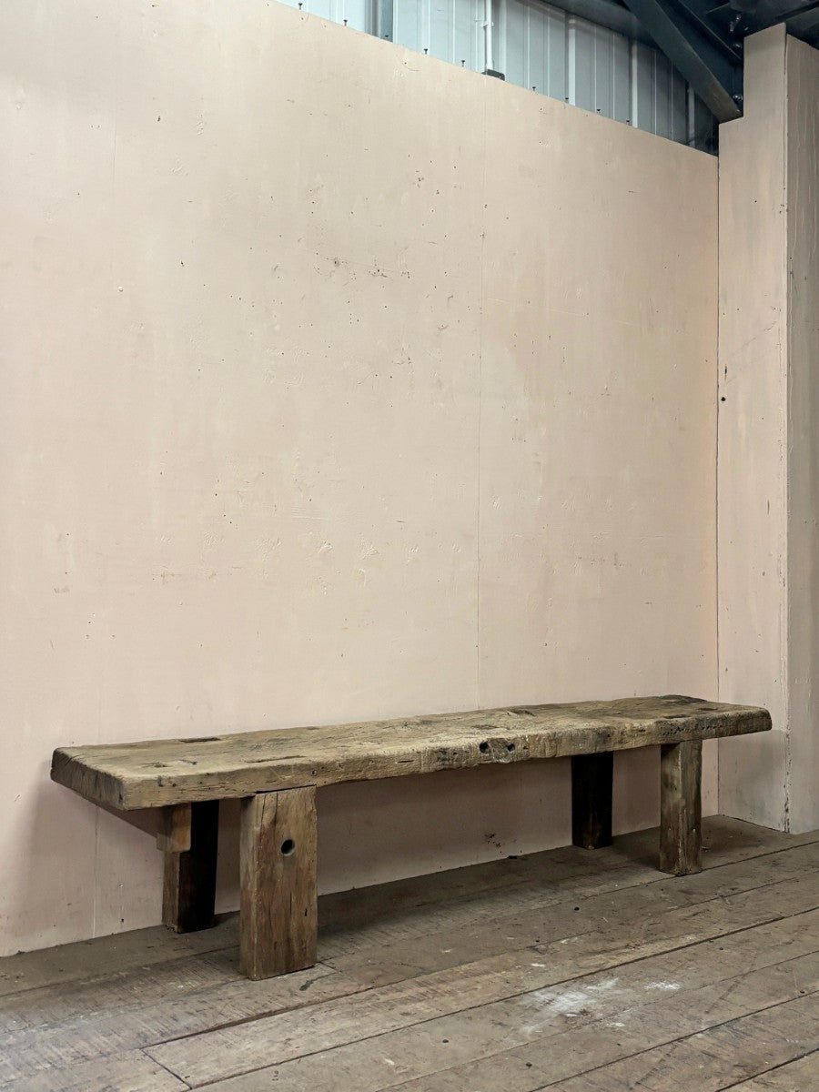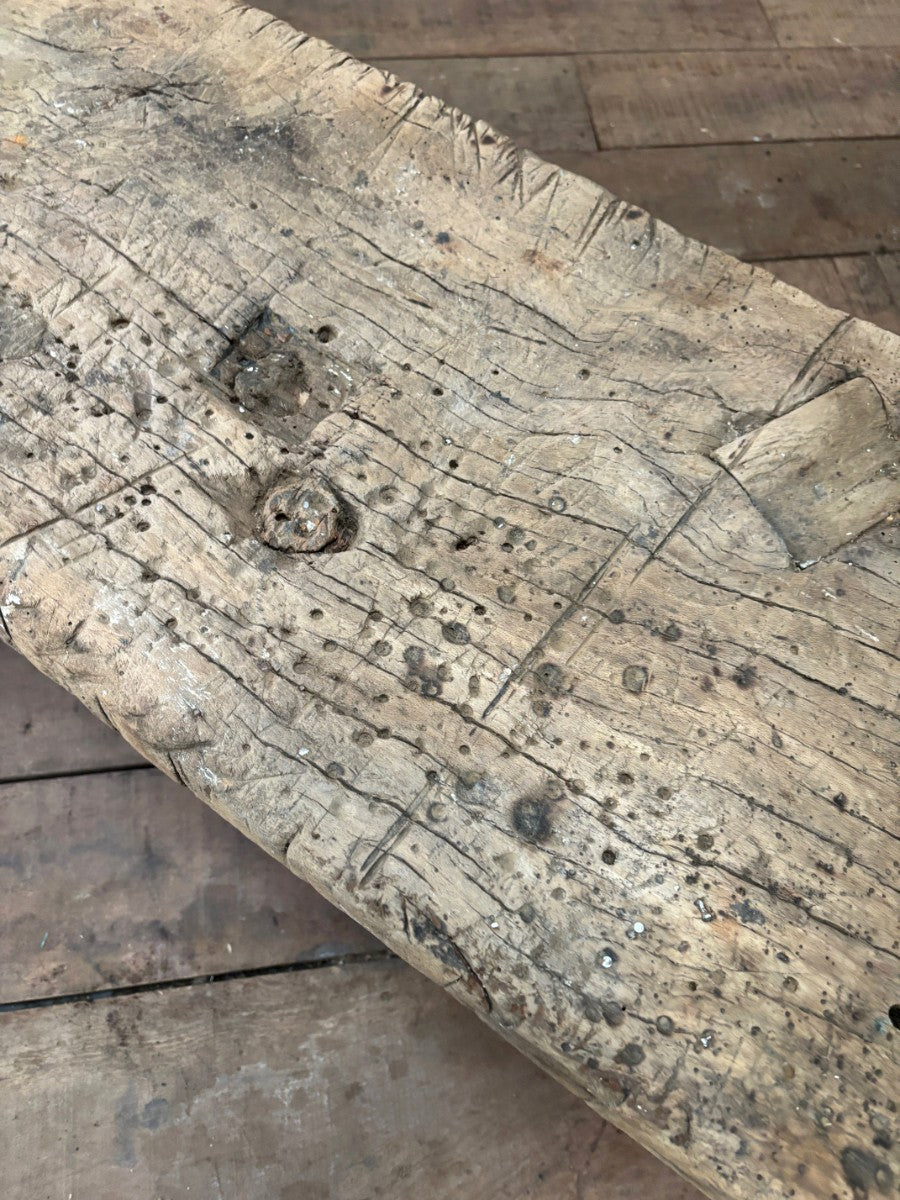 This is a cut down 19th century hardwood carpenters workbench, incredibly strong and sturdy, and at useable height for either a bench, or low table.