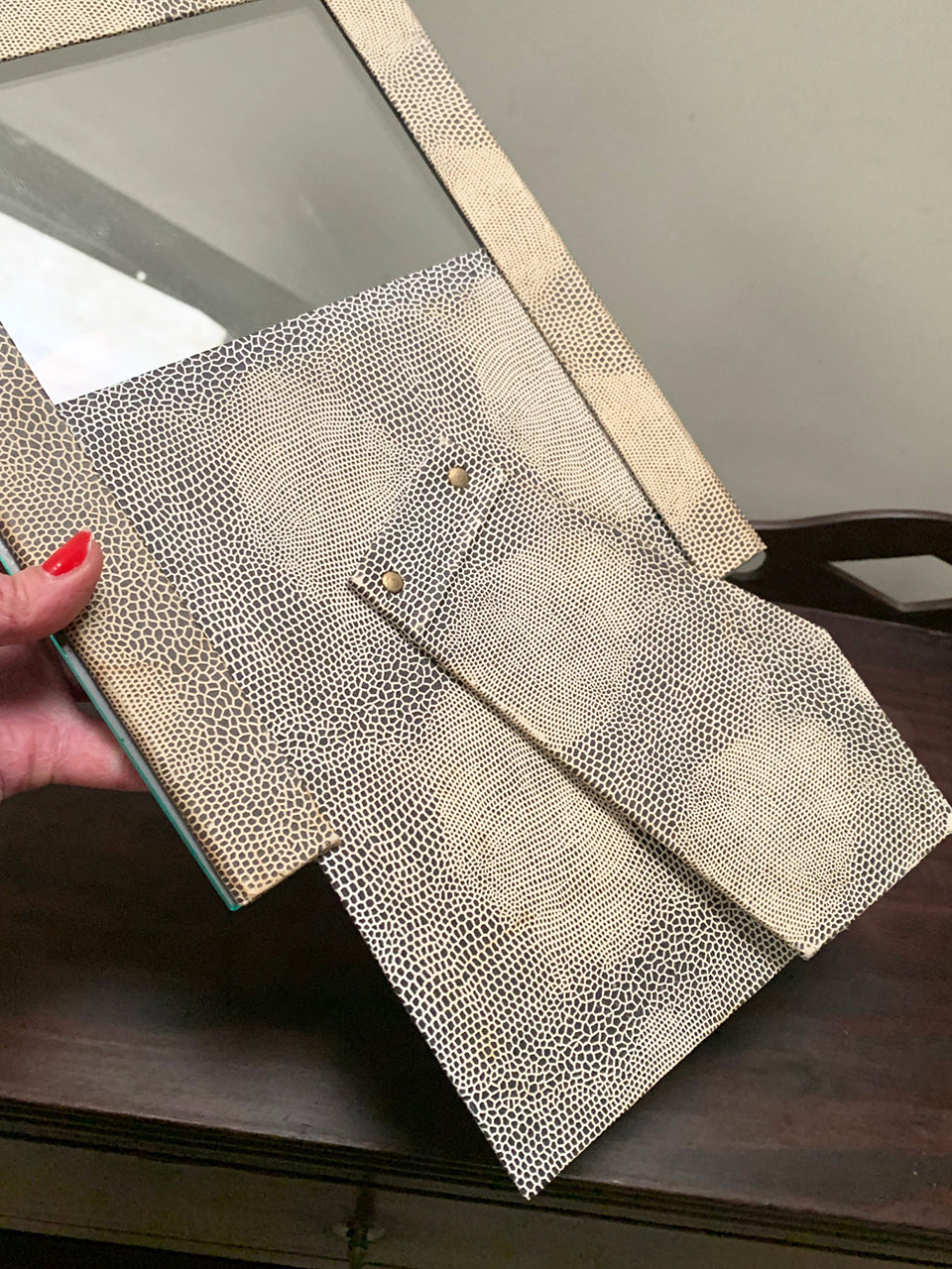 1940s mirrored frame with a scalloped edge. In very good condition, no chips or cracks. Sourced from Paris.
