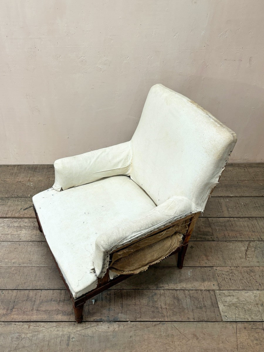 Late 19th century armchair on turned legs with fluted rails with a very generous seat depth and width.