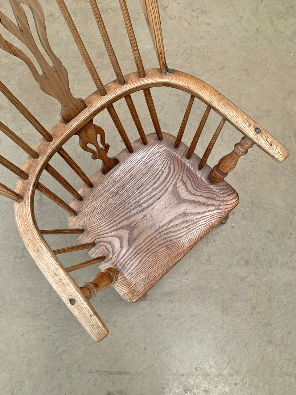 – SoldA classic English elm Windsor chair, which seems to have been cut down, making the seat lower than standard chairs of this style.