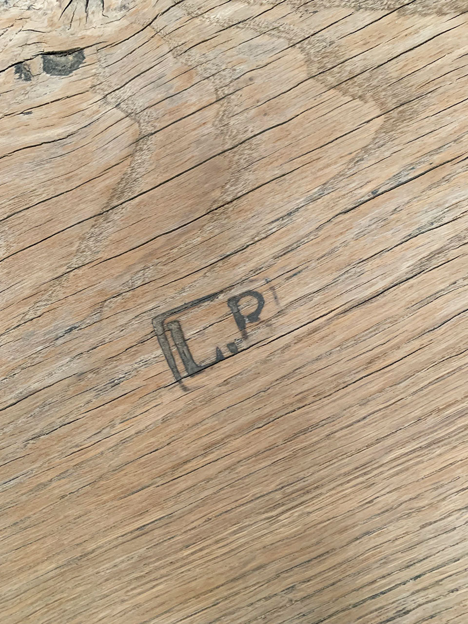 A great size at a little over 3 meters long and a deep seat. Stamped in the centre with the initials 'L.R'.