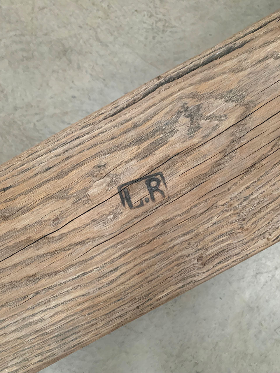 Stamped in the centre of the seat with the initials 'L.R'.