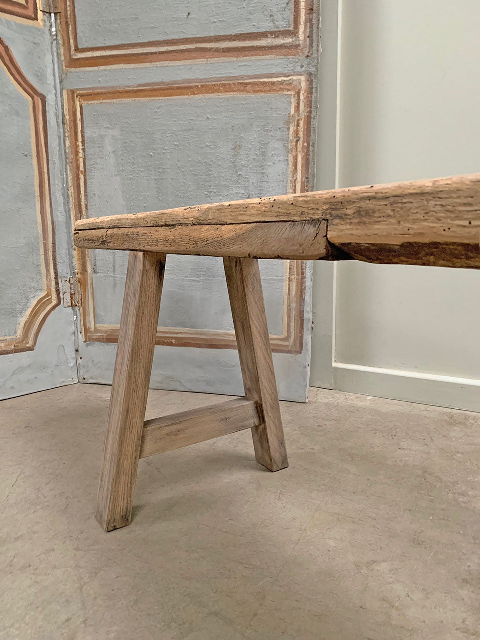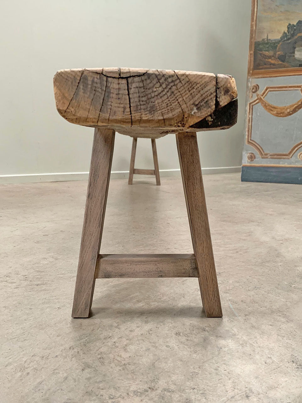 The original legs were in very poor condition so our cabinet maker has replaced them with very sturdy A-frames to support the seat.