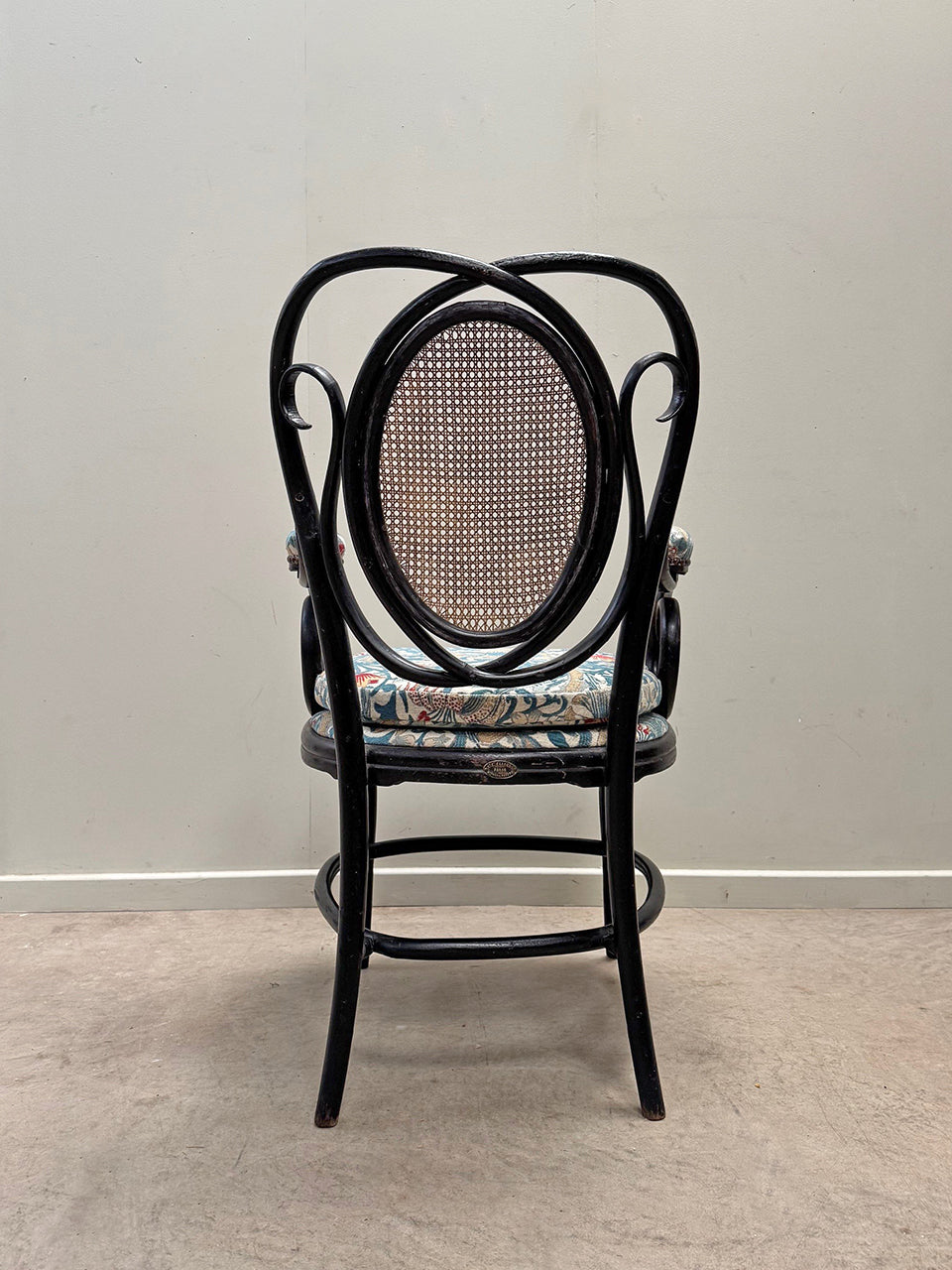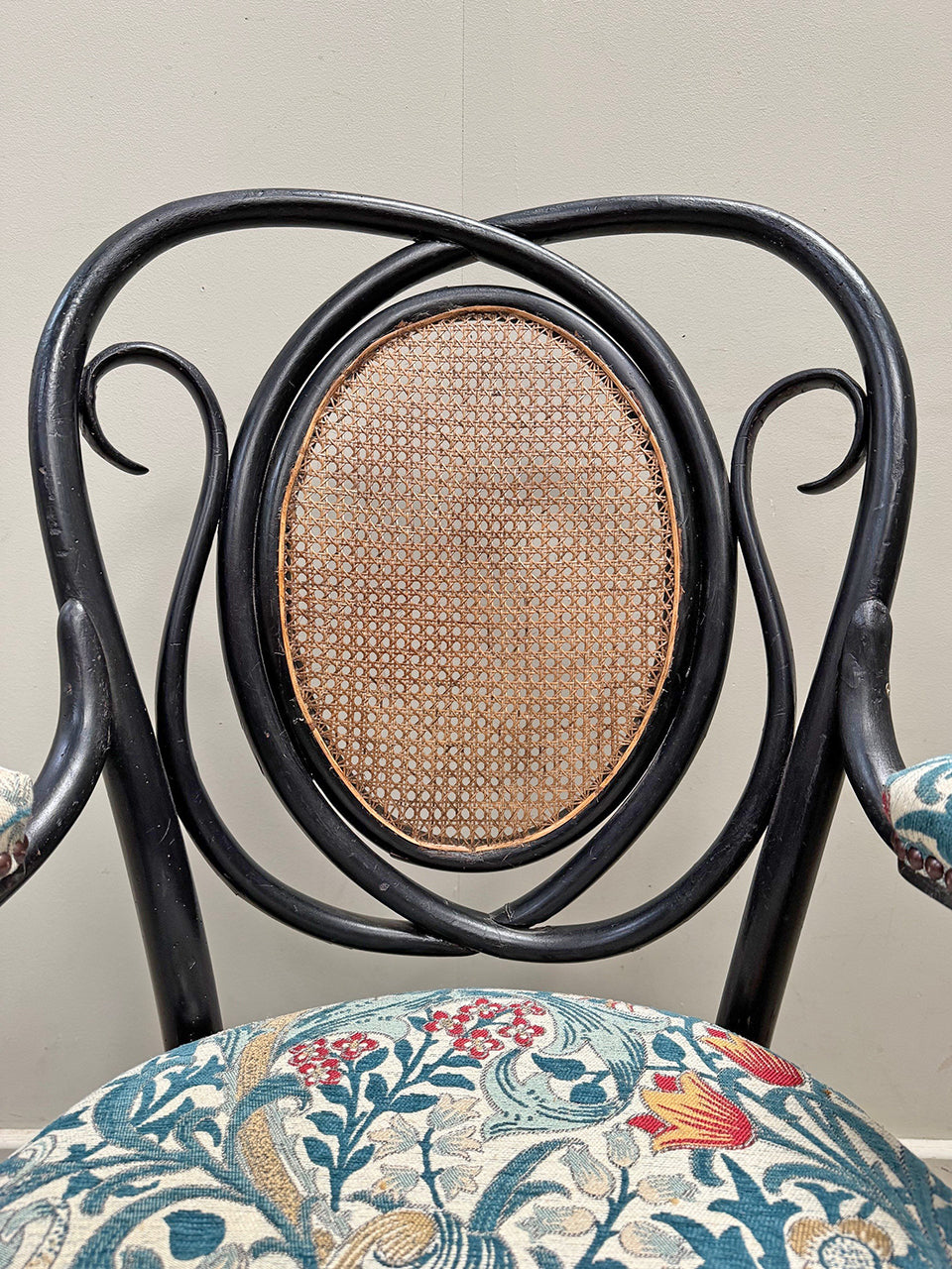 The cane back is intact, and there has been an old repair to the back of the stretcher. The chair is strong and stable.