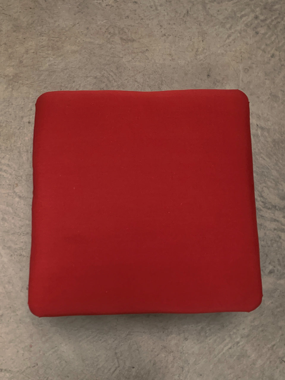 A generously proportioned Napoleon III footstool with pastel blue painted legs, set on reclaimed castors.