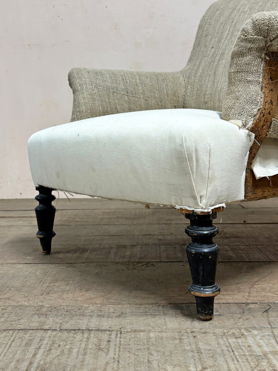 Hard to find and generously sized pair of mid 19th century scroll back armchairs which we have fully restored.