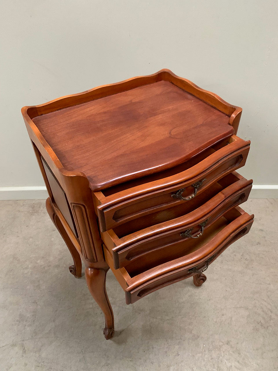 They sit on cabriole legs with scrolled feet. Early 20th century, fruitwood.