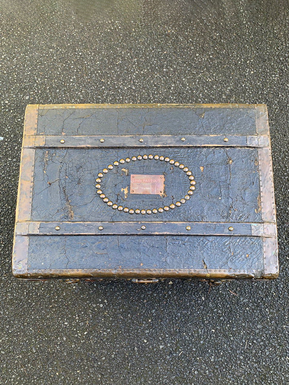 There is a small plaque on the top which reads 'Louis Pastout' although this is probably a later addition. A strong box.
