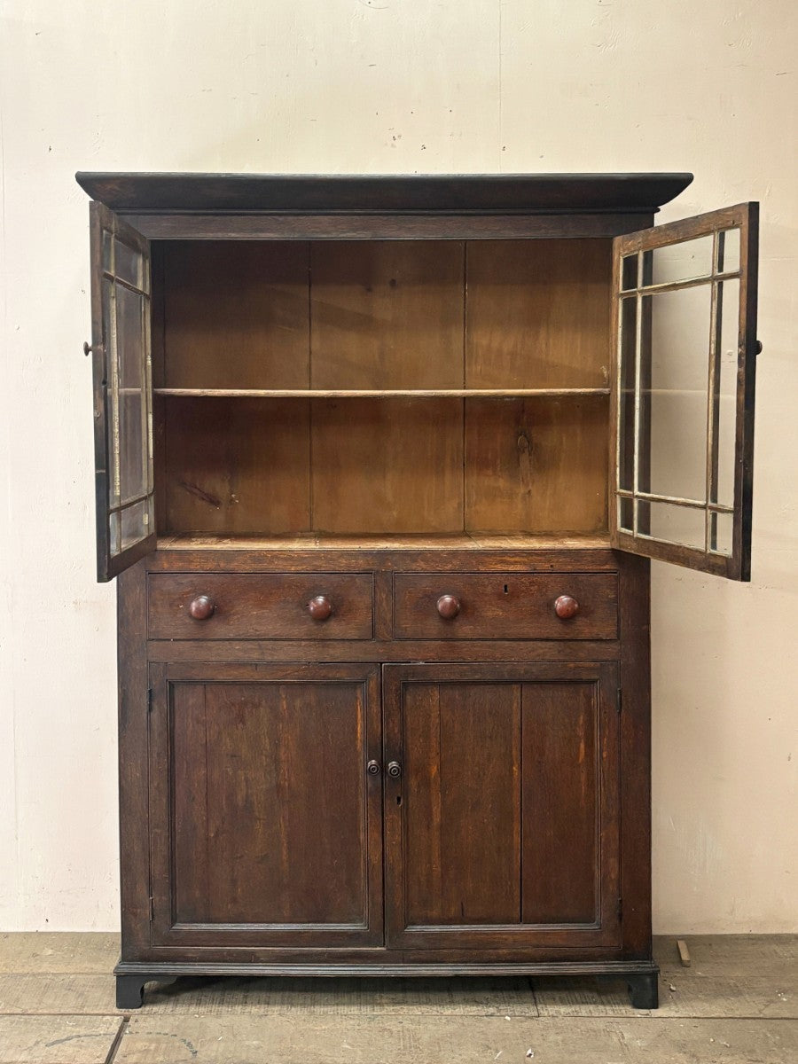 Very well proportioned 18th century solid oak part glazed dresser with 2 drawers over a cupboard.