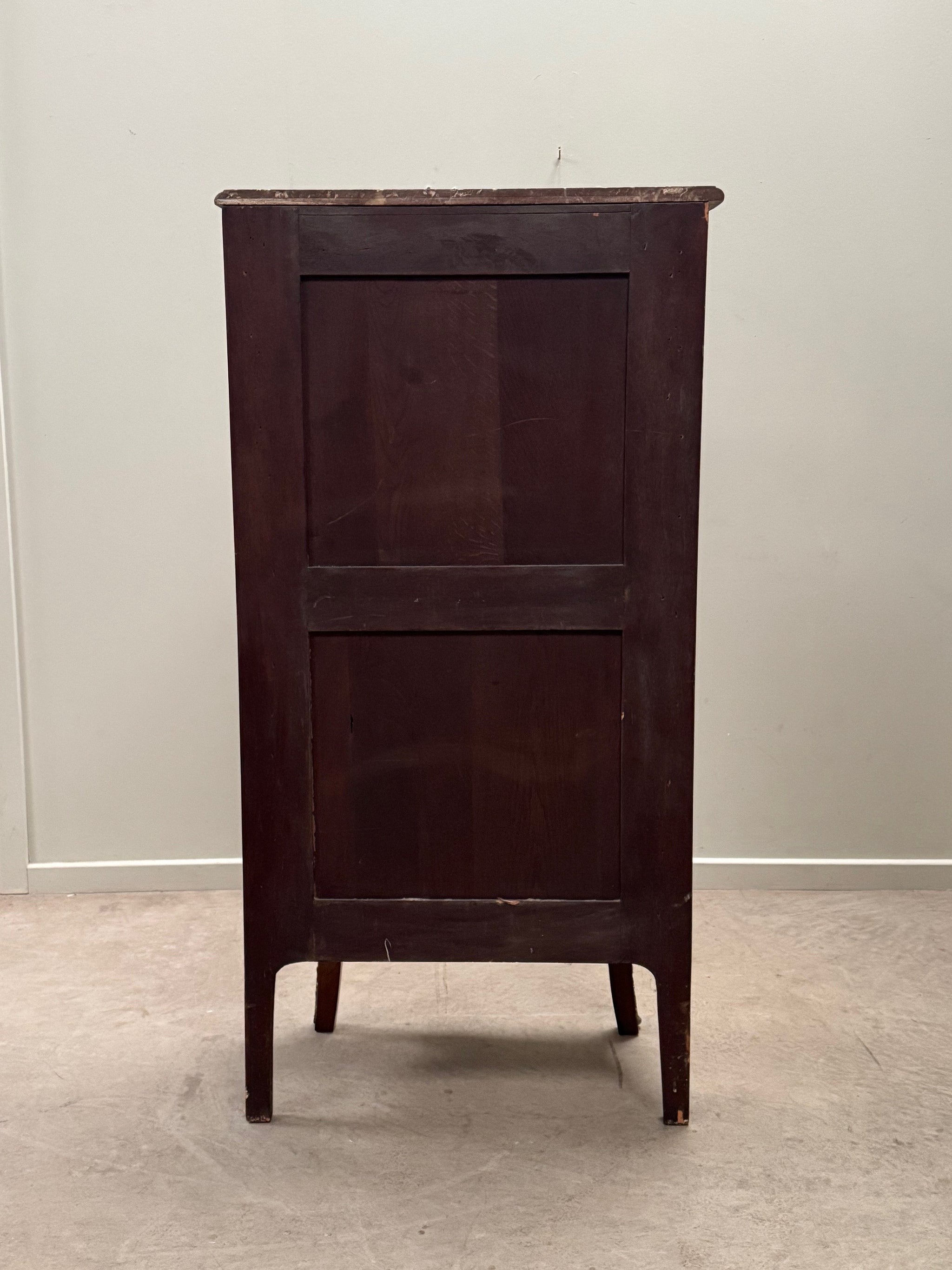 With four drawers and a drop down panel, unveiling a compact desk space, with a writing pad and storage.