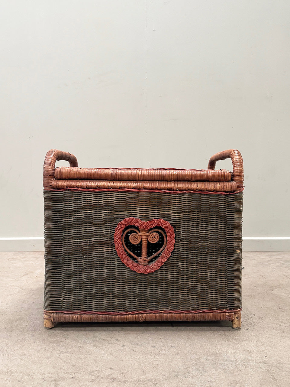 There is a decorative red woven heart motif to the front. In overall good condition.
