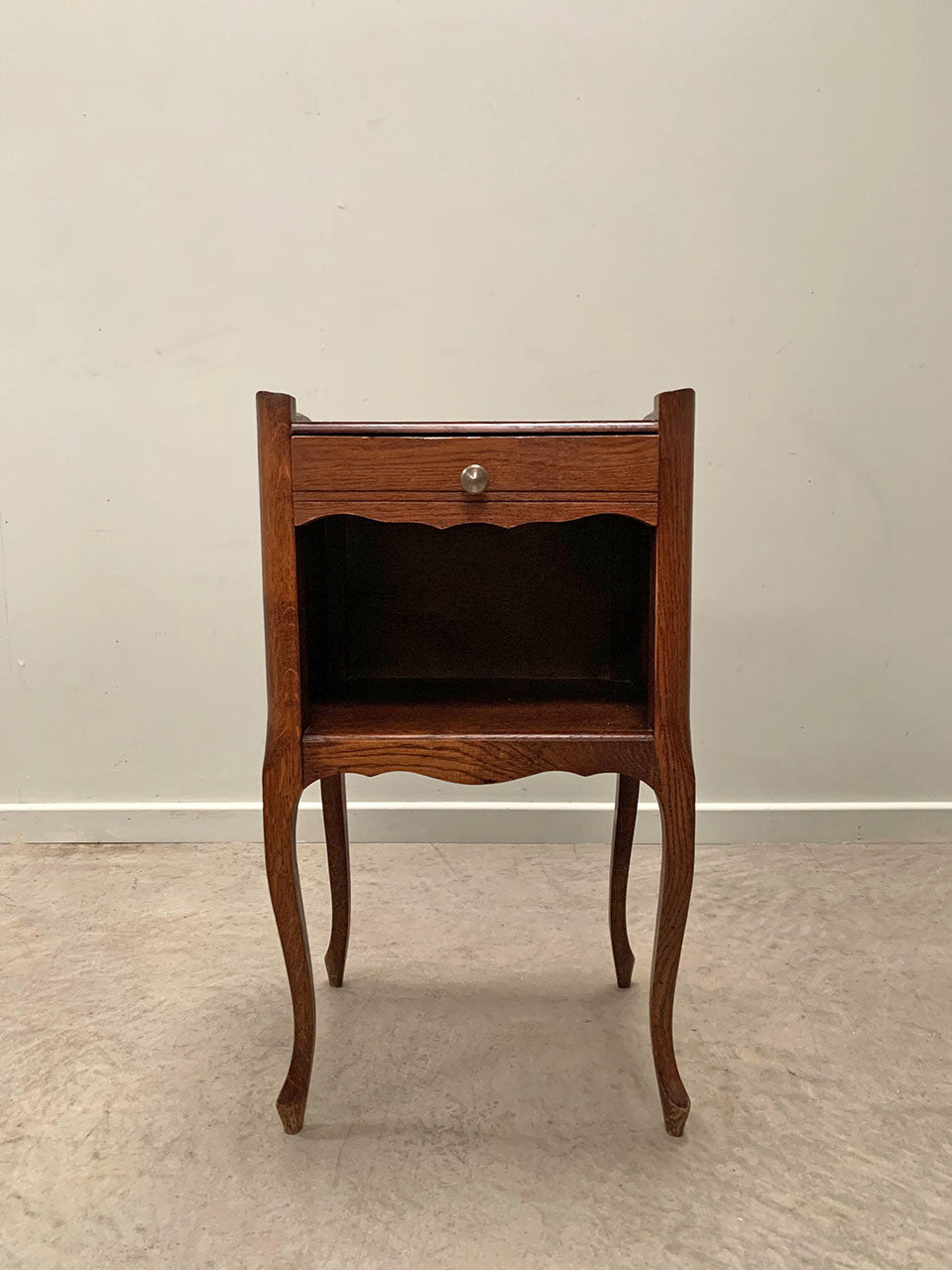 Early 20th century bedsides, each with a single drawer and open storage area.