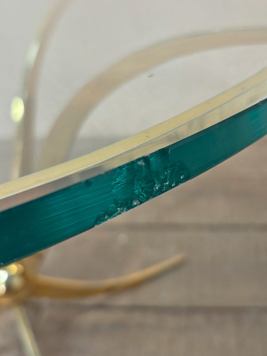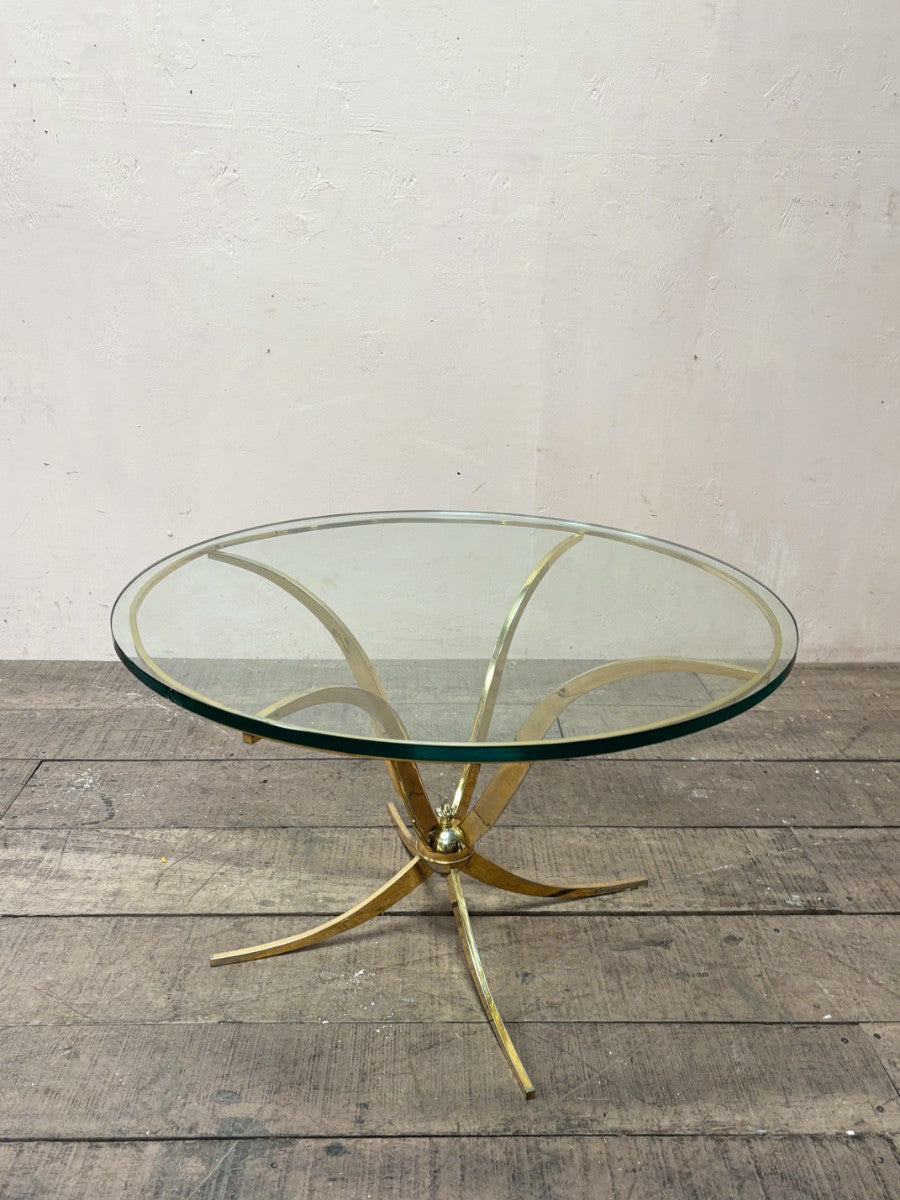 High quality 1950’s brass plated coffee table with thick glass top, note the glass has a small scar/nibble to the edge.