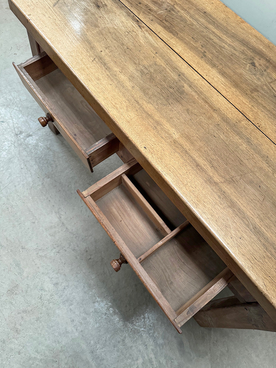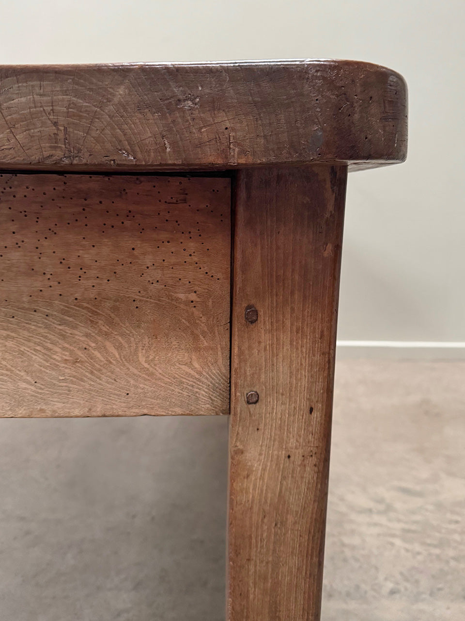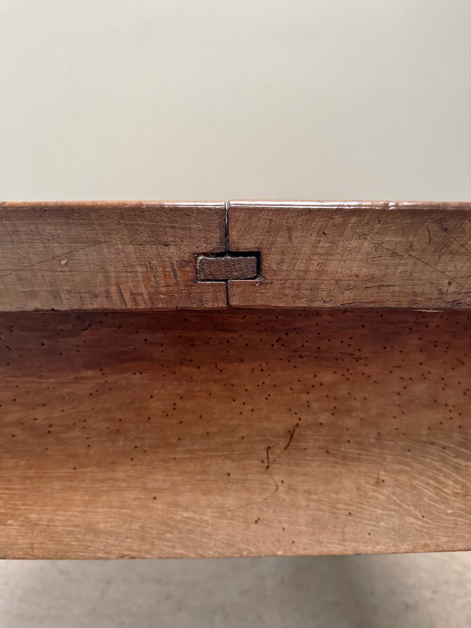 The top planks are joined together by dovetails joints, which are only visible when lifting the top off, but are a testament to the craftsmanship involved in the making of this table.