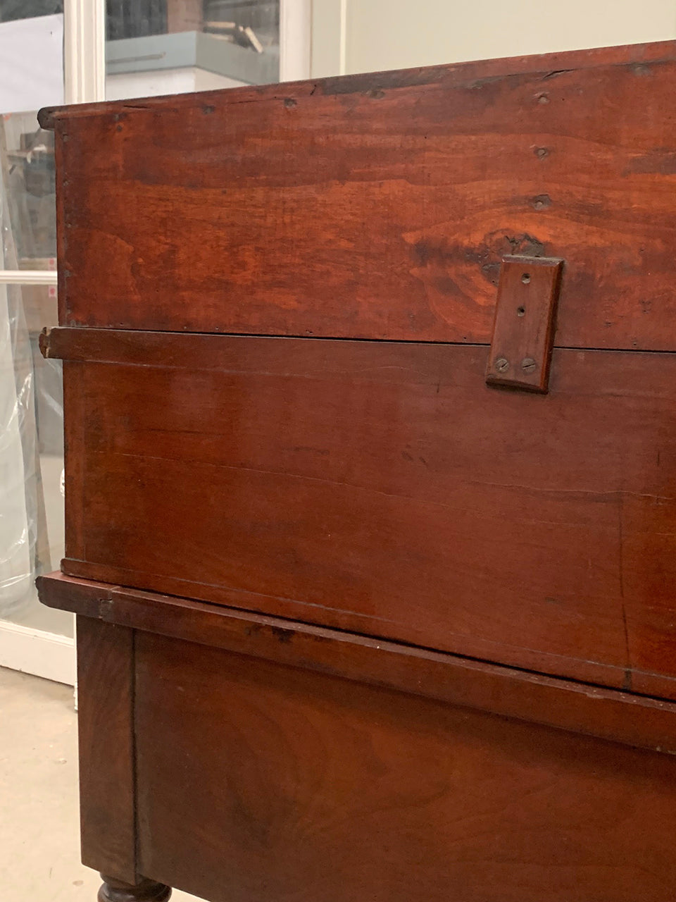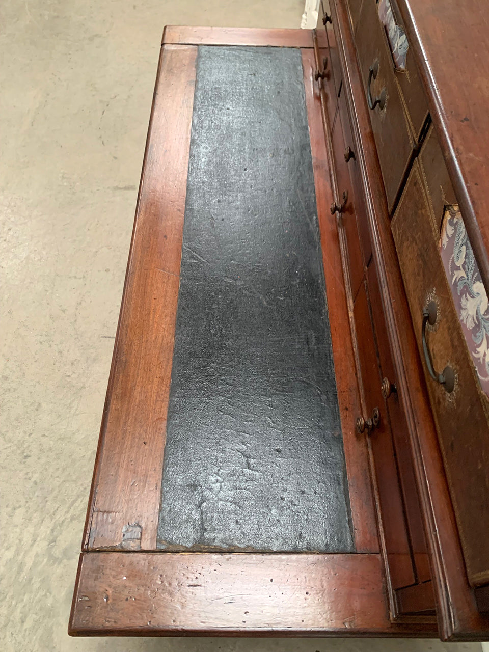 There are further drawers under the desk top with the central drawer having a working lock and key. There are 2 pull out writing pads at each side also.