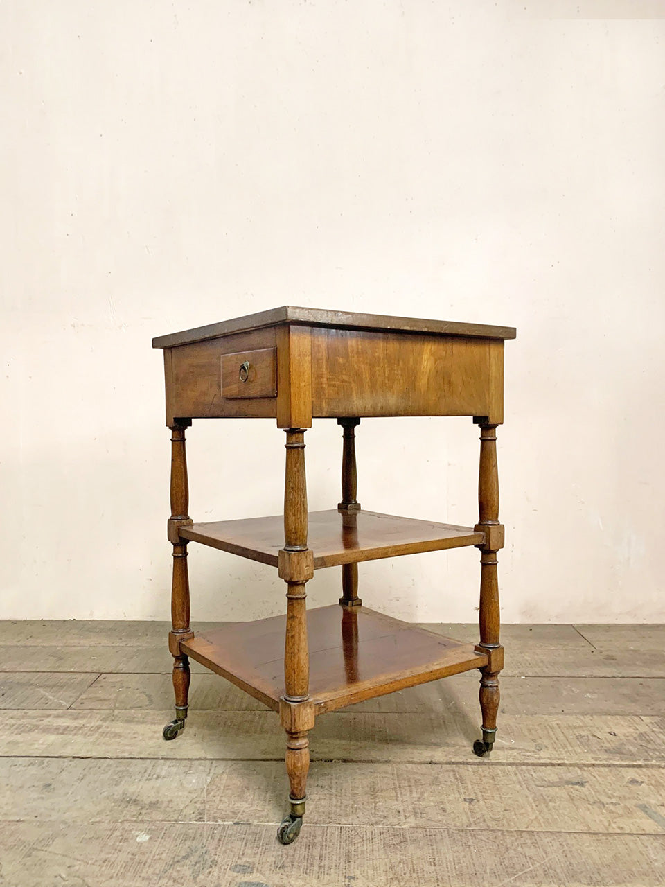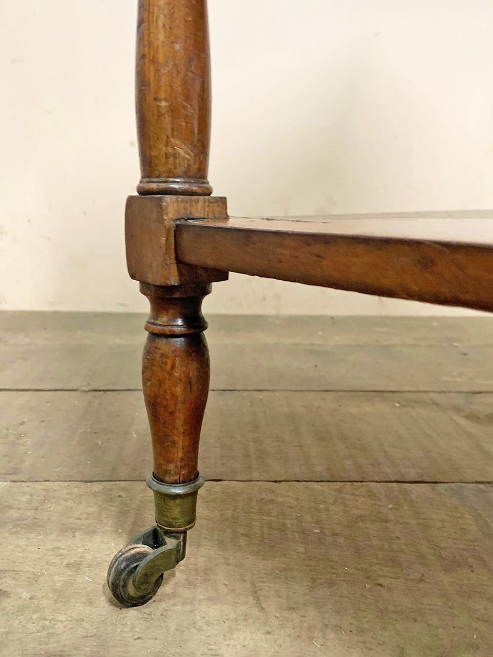 With turned uprights, the table sits on castors.