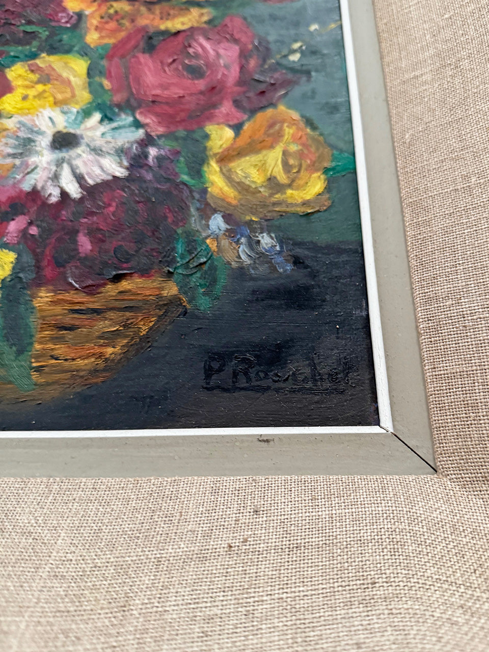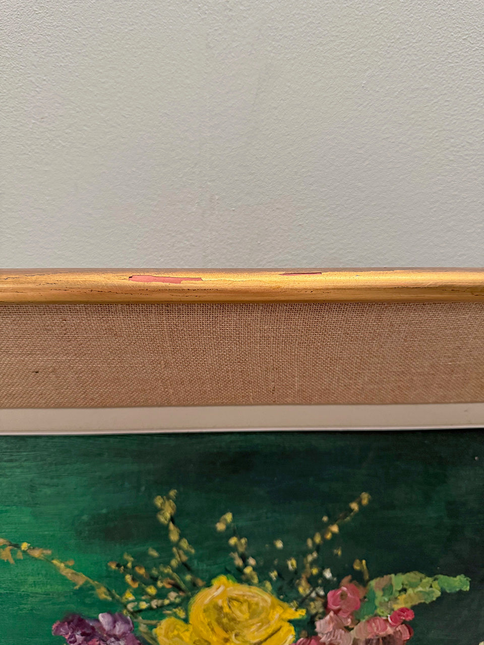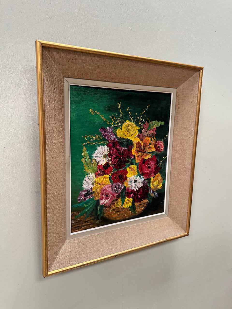Pretty floral artwork - oil on board in a jewelled coloured palette.