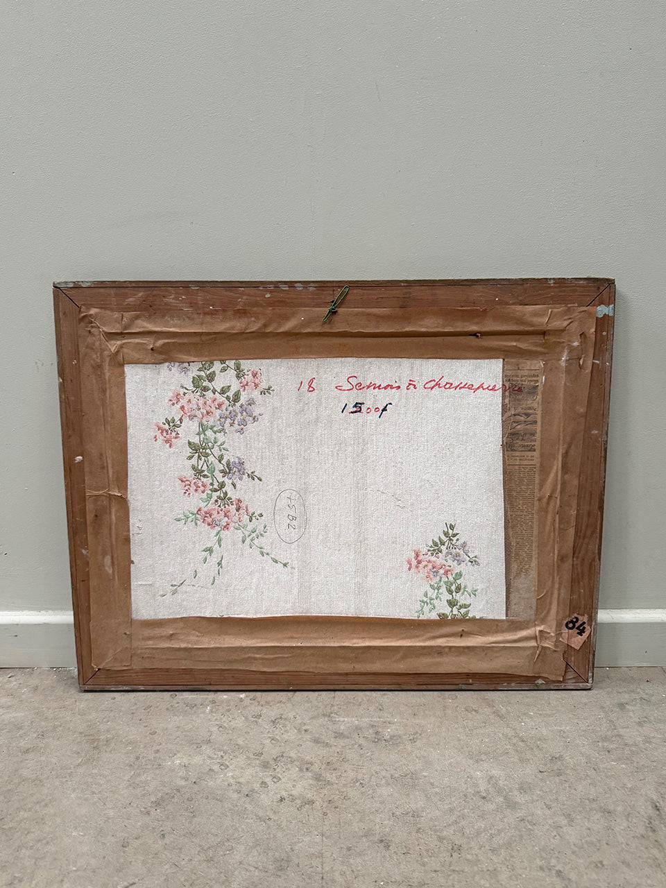 Set in a deep wooden frame which has been painted a dull gold colour, with a white slip running around the perimeter.