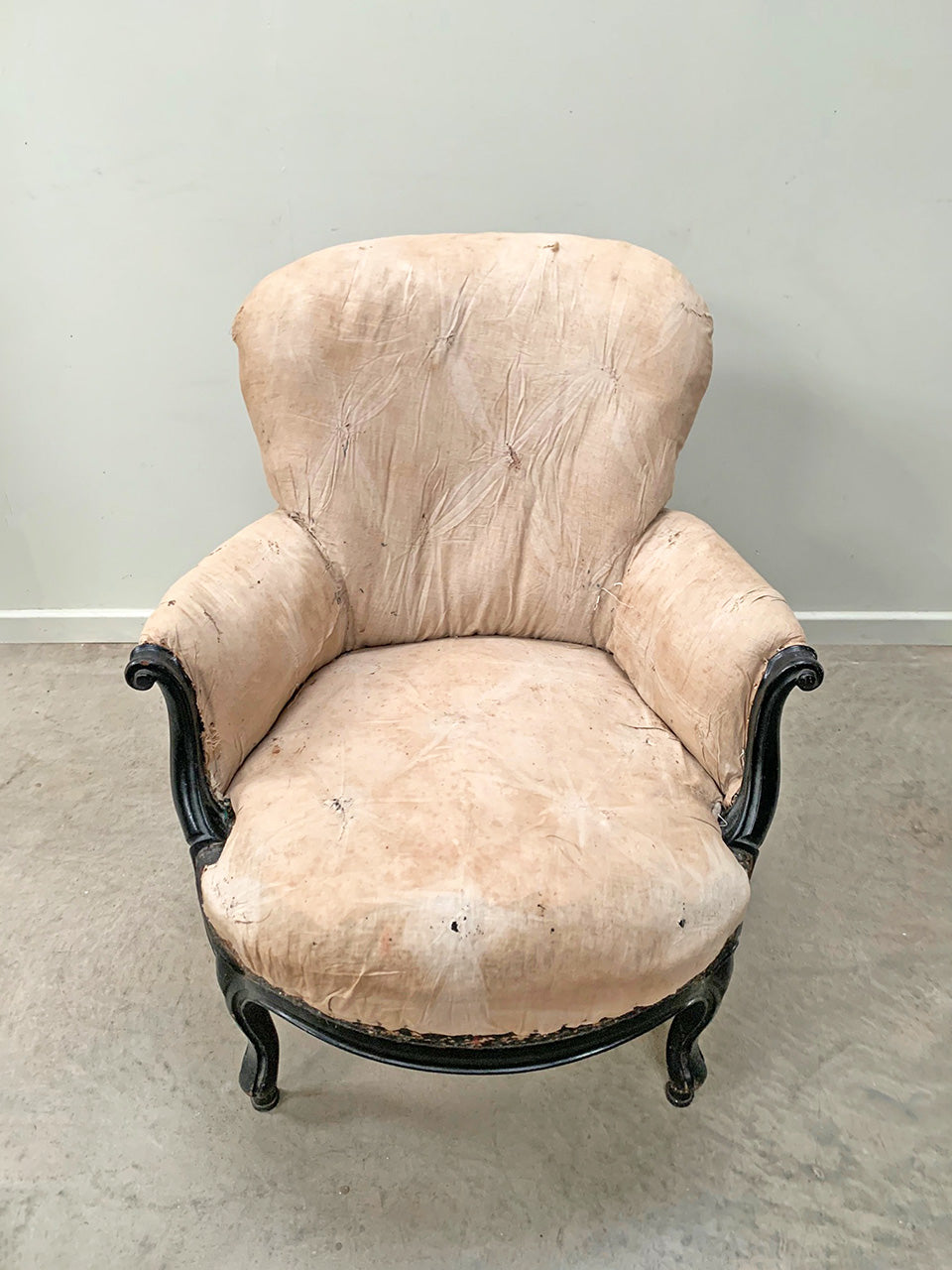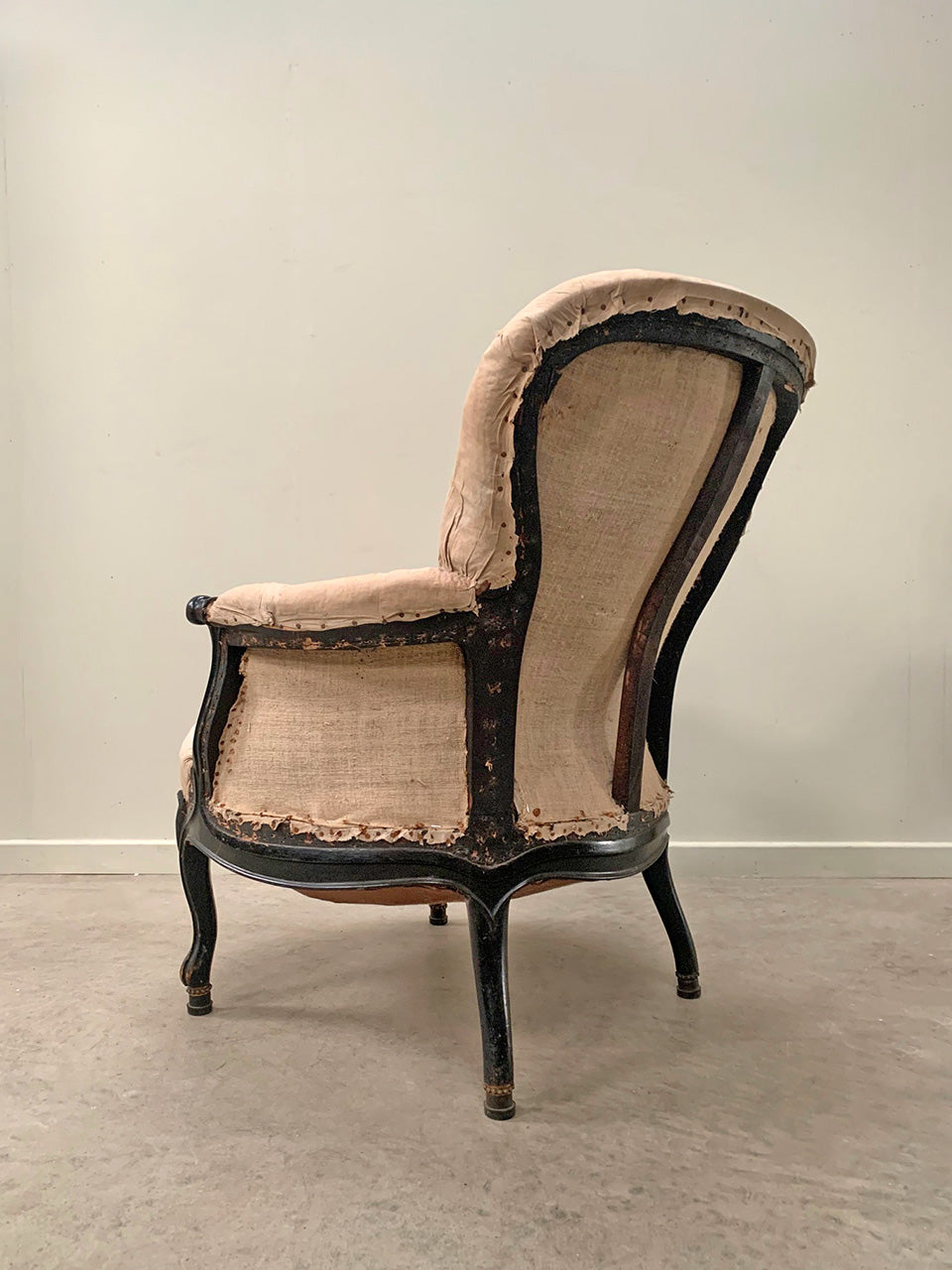 Napoleon III / 1840s, rounded back armchair on cabriole legs.