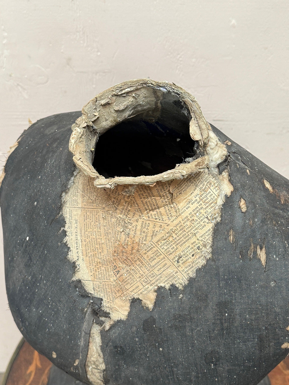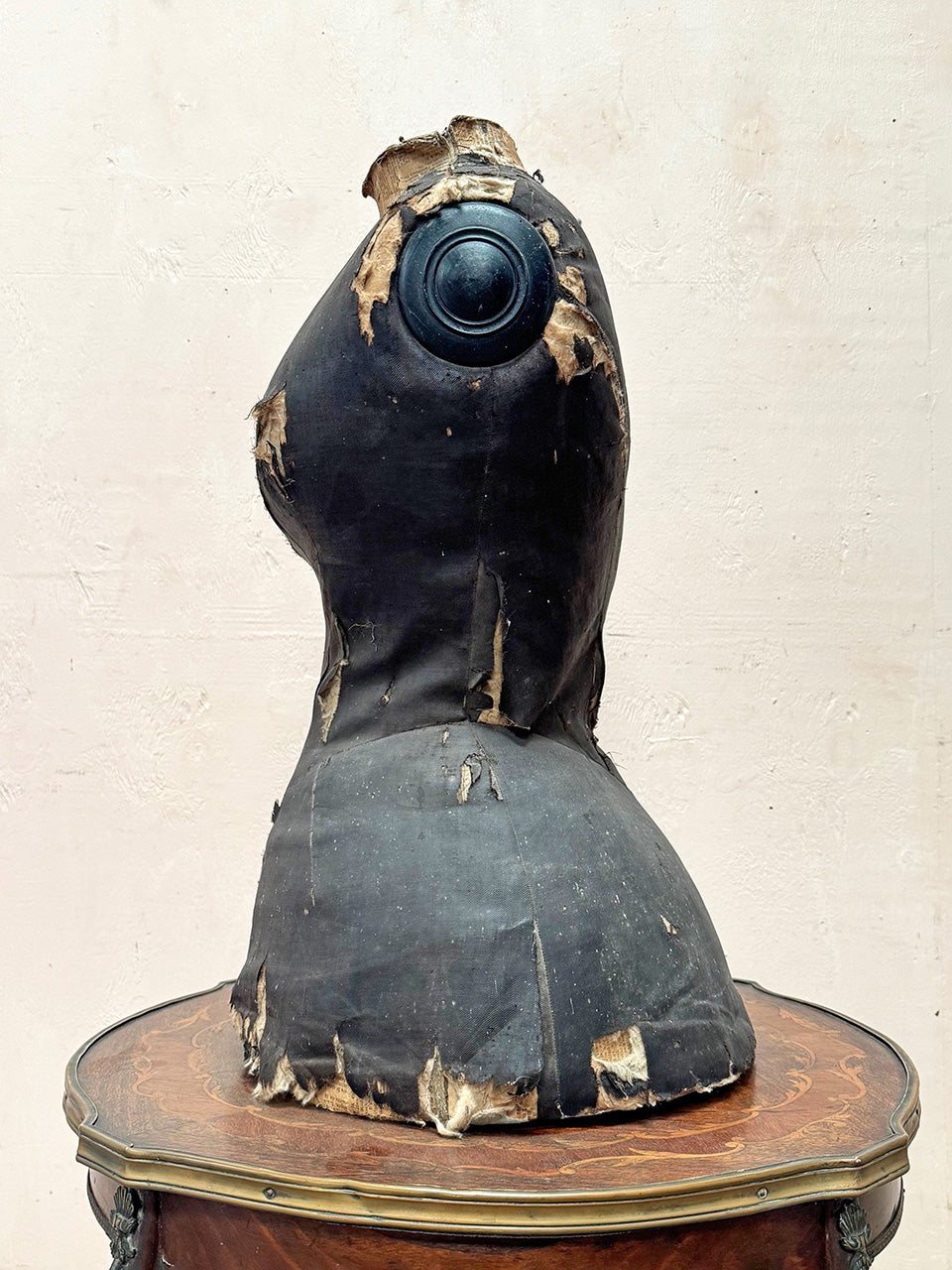 – SoldMannequin torso lightly covered in an old newspaper with a very worn thin black fabric layered over it.